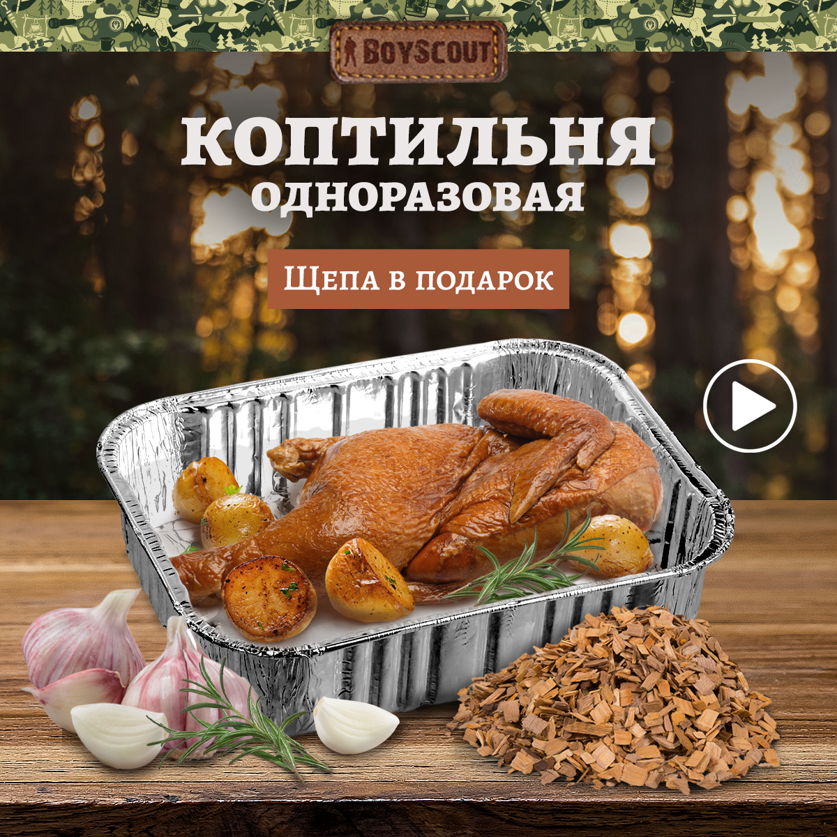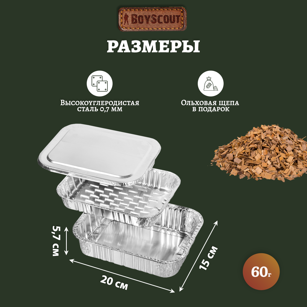 Набор - Коптильня одноразовая 20х15 см с ольховой щепой, BOYSCOUT интересное: