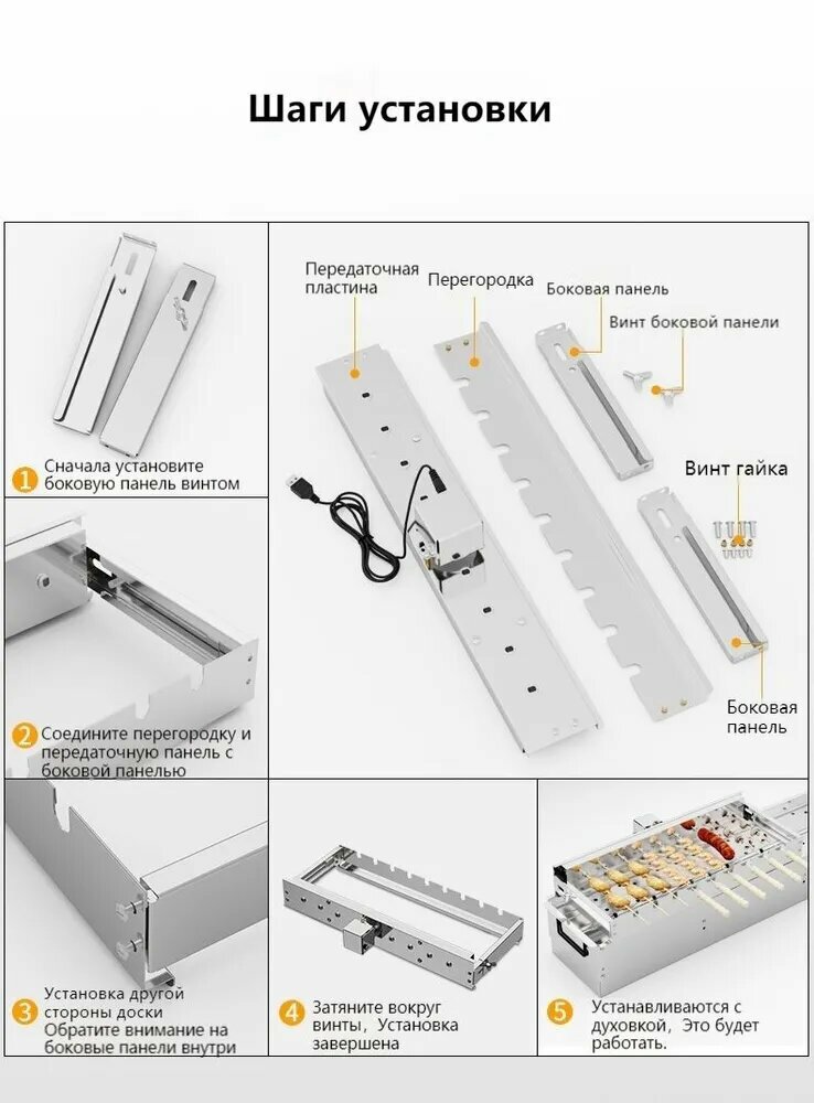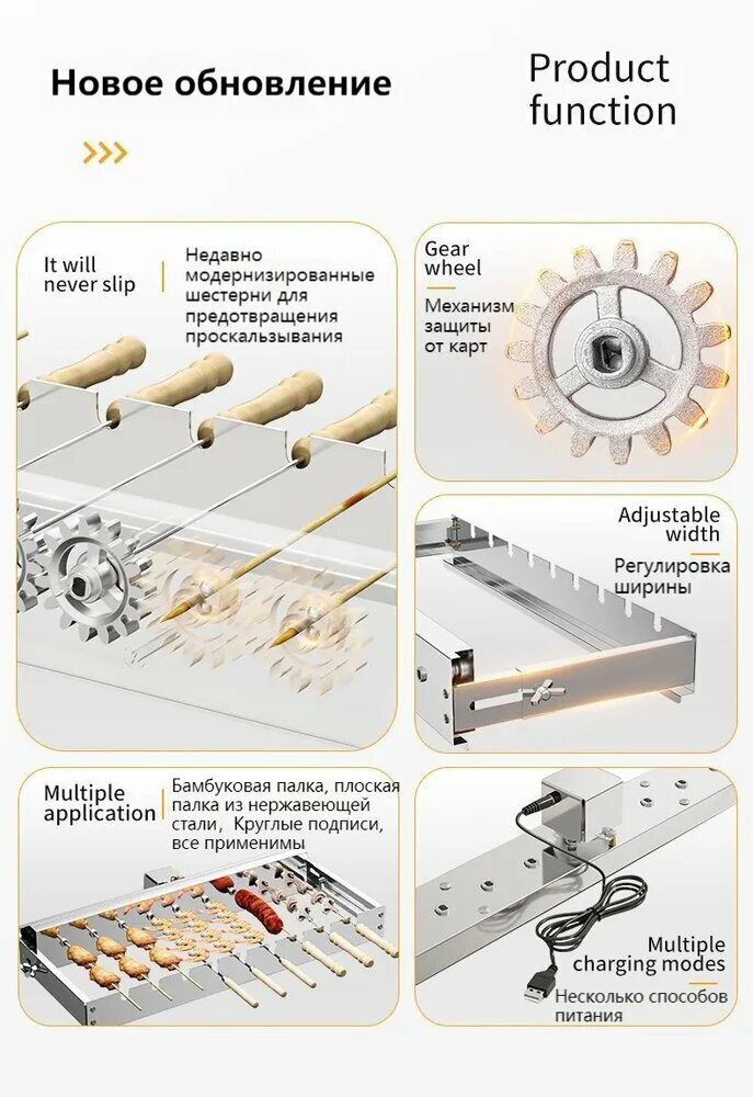 Устройство для вращения шампуров, 80 см, 15 шт Источник питания USB интересное: