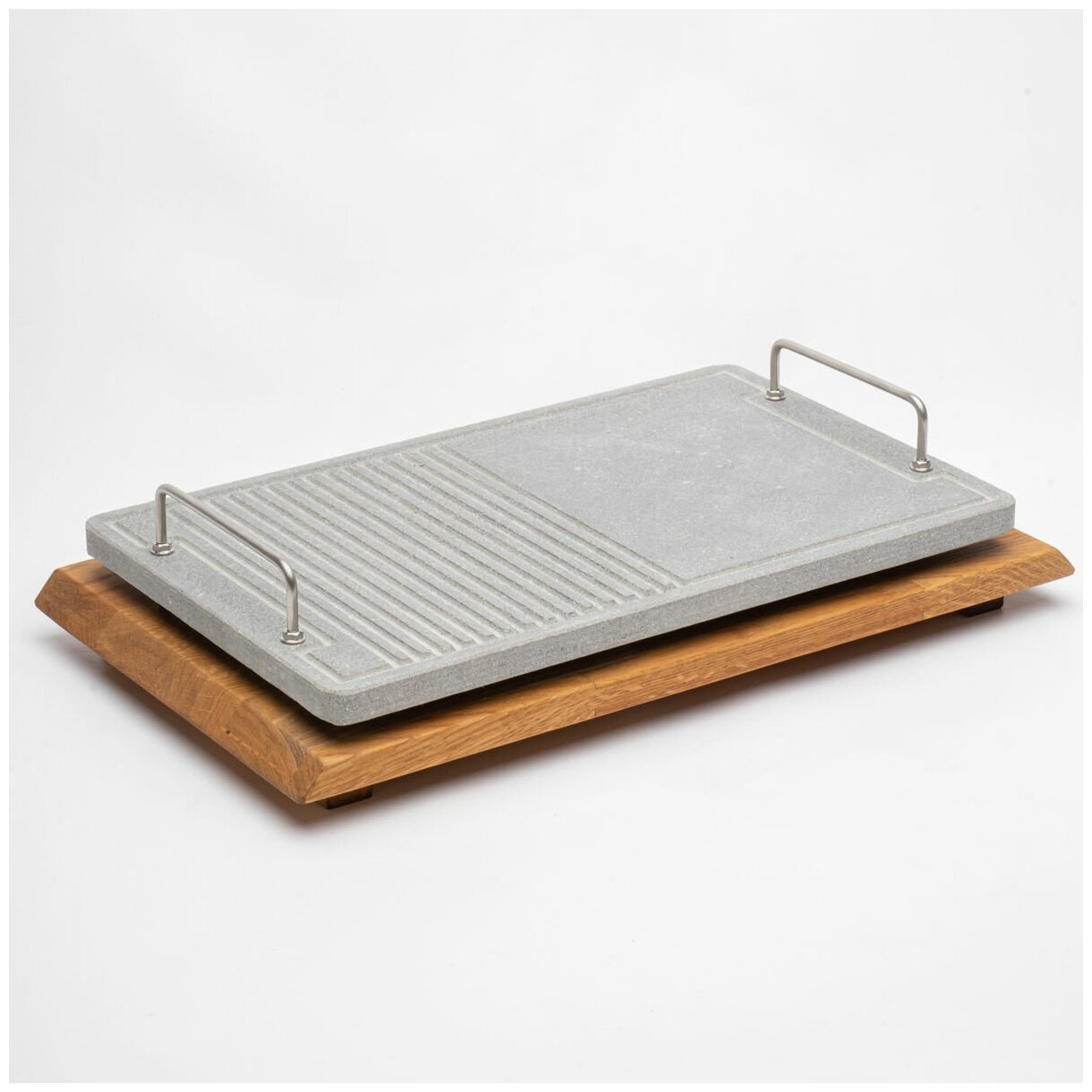 Каменный гриль"BBQ" 6 Предметов. Для жарки мяса, рыбы и овощей на открытом огне мангала или в духовке. Вулканический камень 470х280 мм