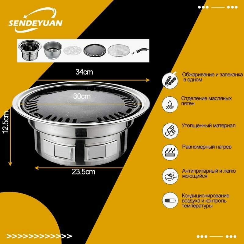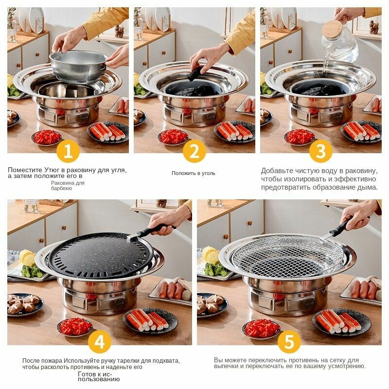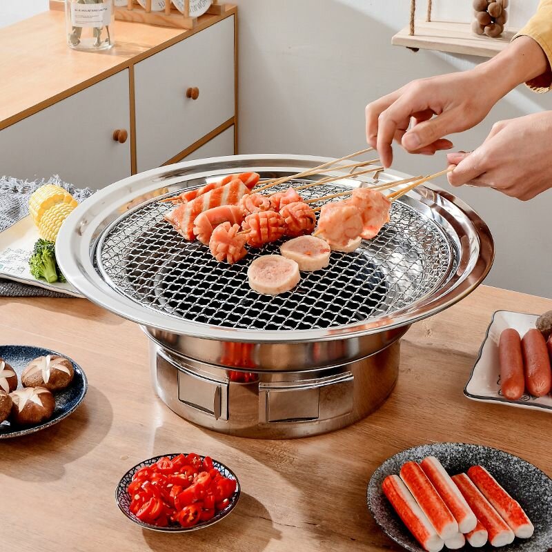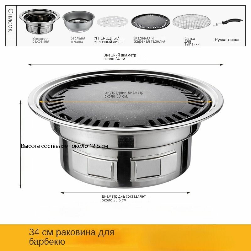 Круглый гриль для барбекю в корейском стиле на открытом воздухе, ветрозащитный, на древесном угле,34cm интересное: