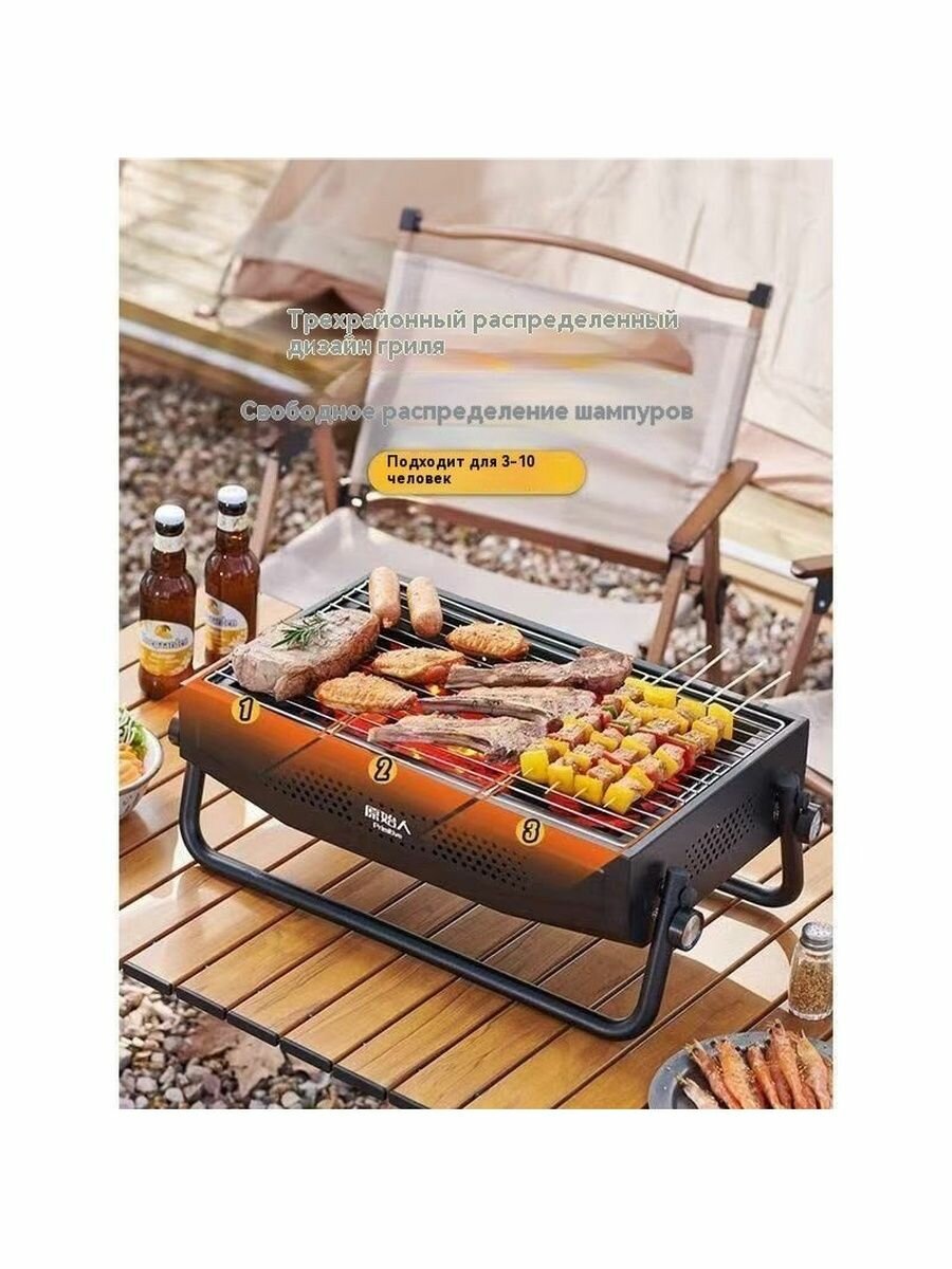 Наружный светлый копченый угольный гриль, портативный складной гриль интересное: