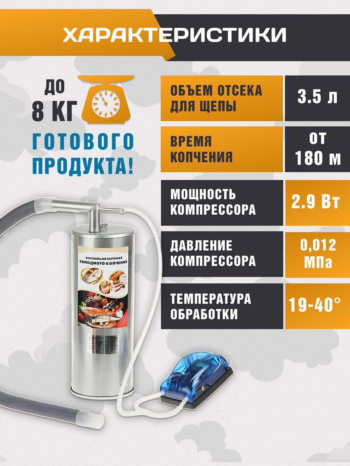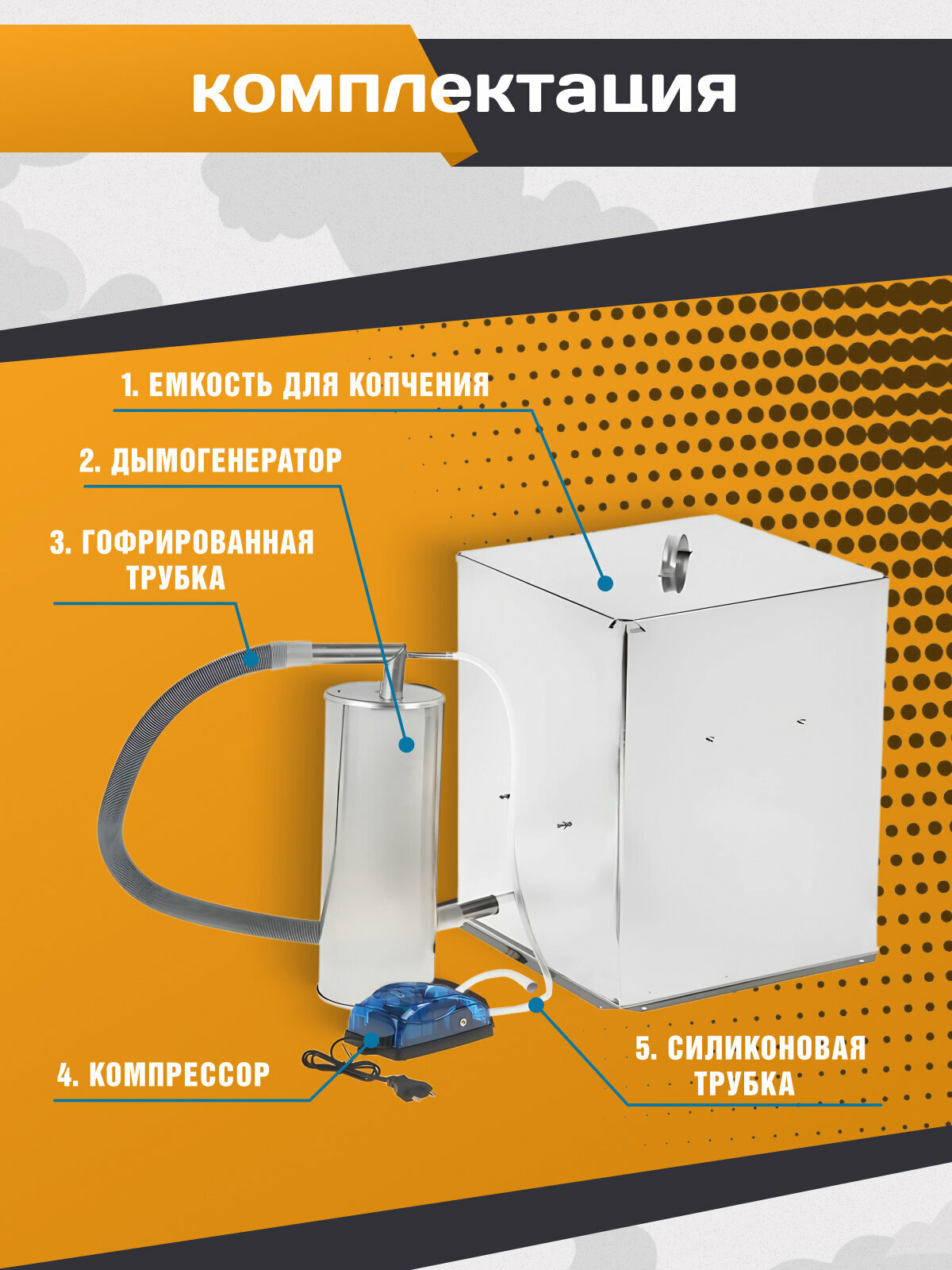 Коптильня холодного копчения Дым Дымыч 02Б из нержавеющей стали, бункер 50 литров интересное:
