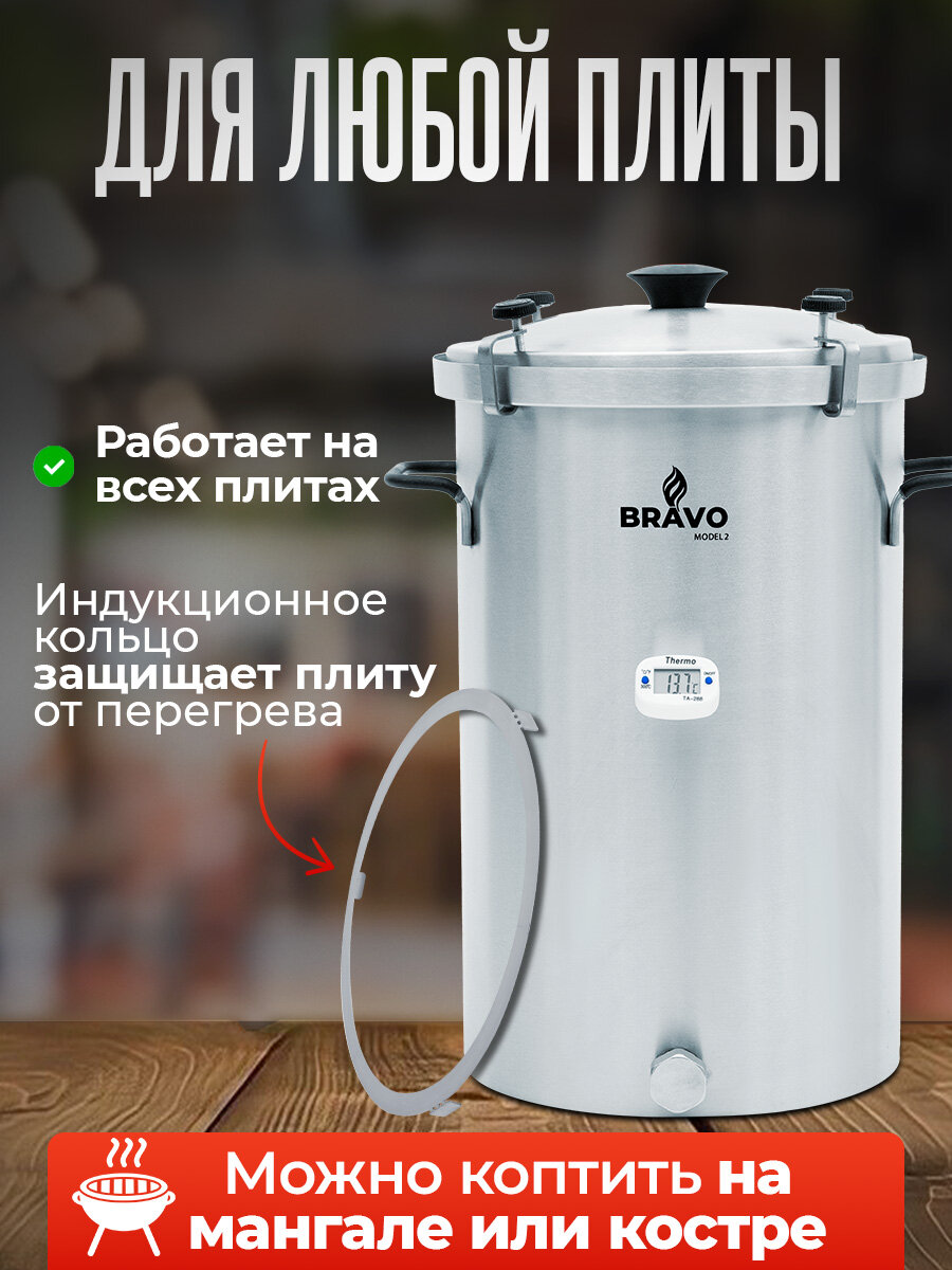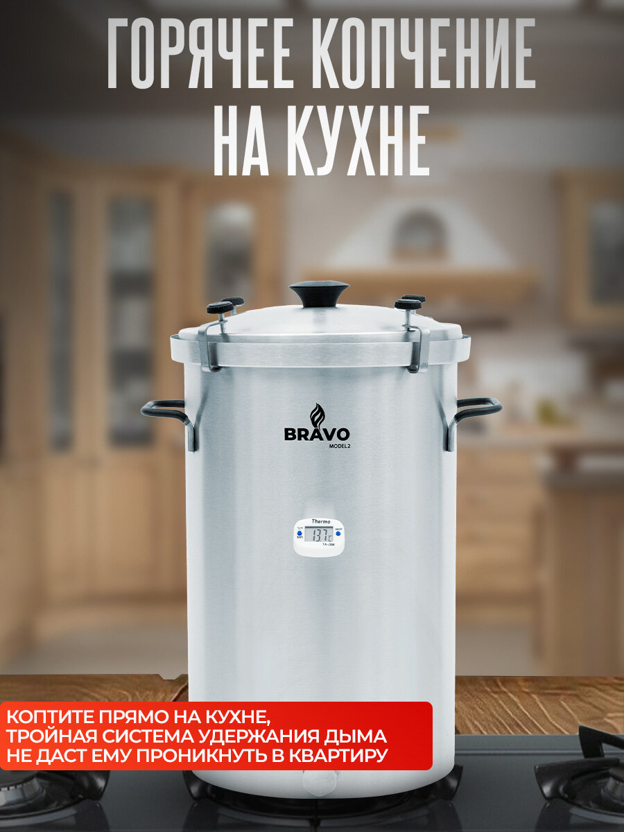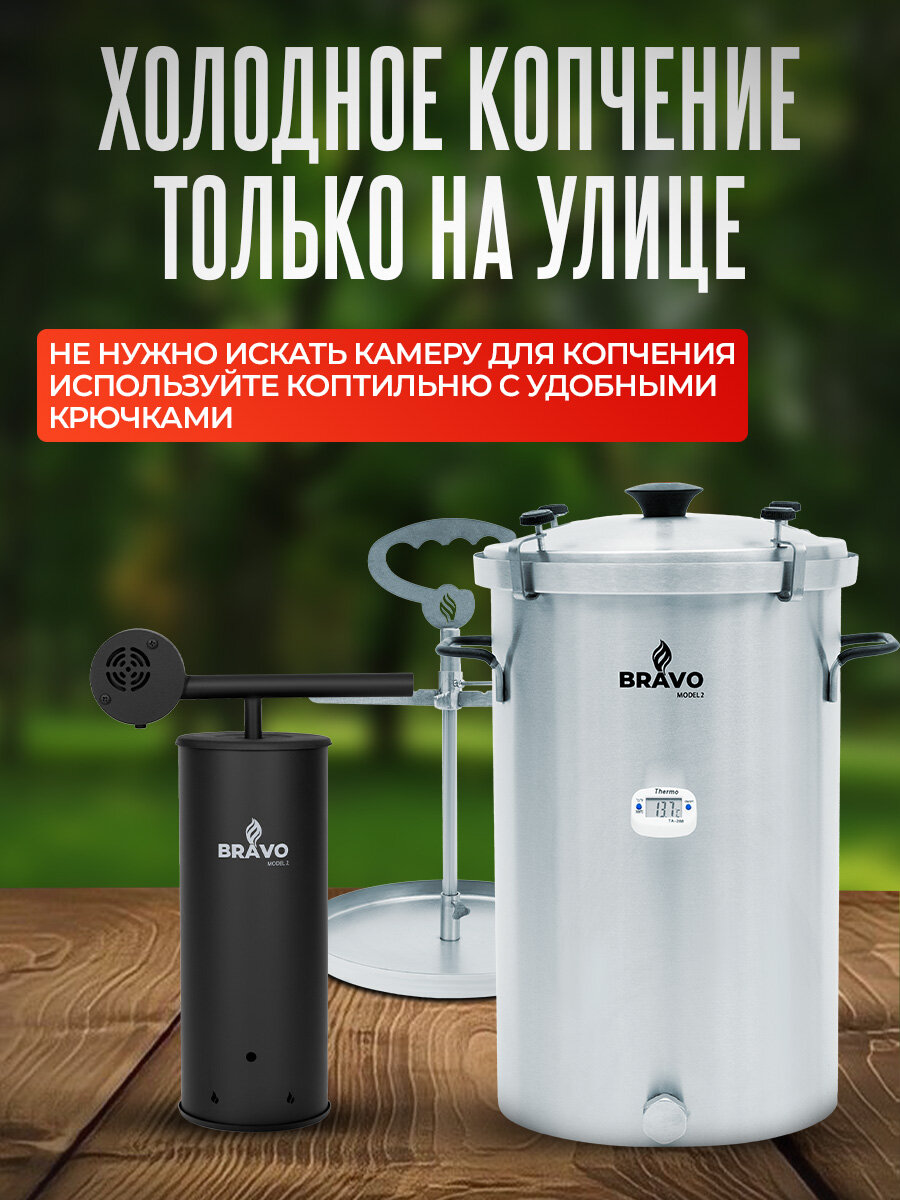 Коптильня Bravo 2 с дымогенератором, 20 литров, для горячего и холодного копчения, сталь, 1 горелка интересное: