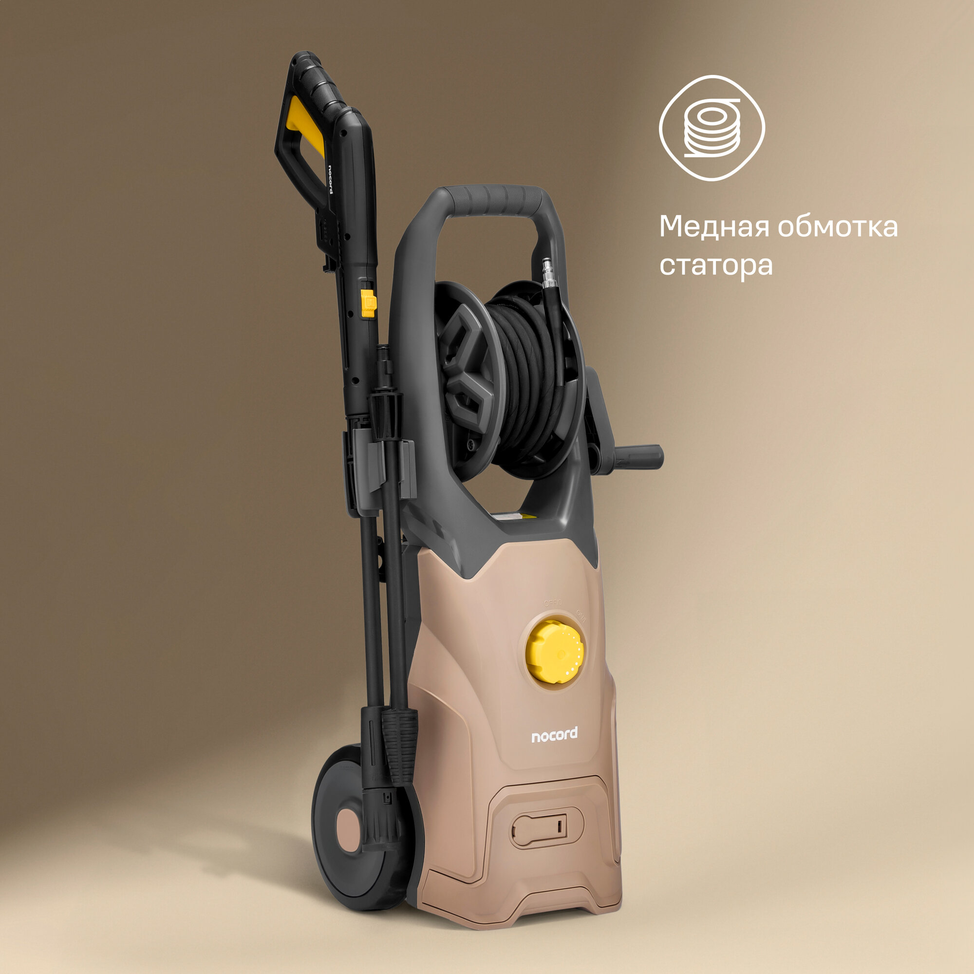 Мойка Nocord, 2200Вт, 170 бар - 130 бар, 450 л/час, регулировка давления, грязевая фреза, пеногенератор 1000 мл, кабель 5 м, шланг 8 м, колёса, NPW-2200.170.450. RA интересное: