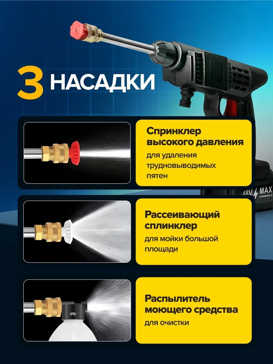 Мойка высокого давления аккумуляторная в кейсе, Портативная автомойка с пистолетом и пенообразователем, беспроводная интересное:
