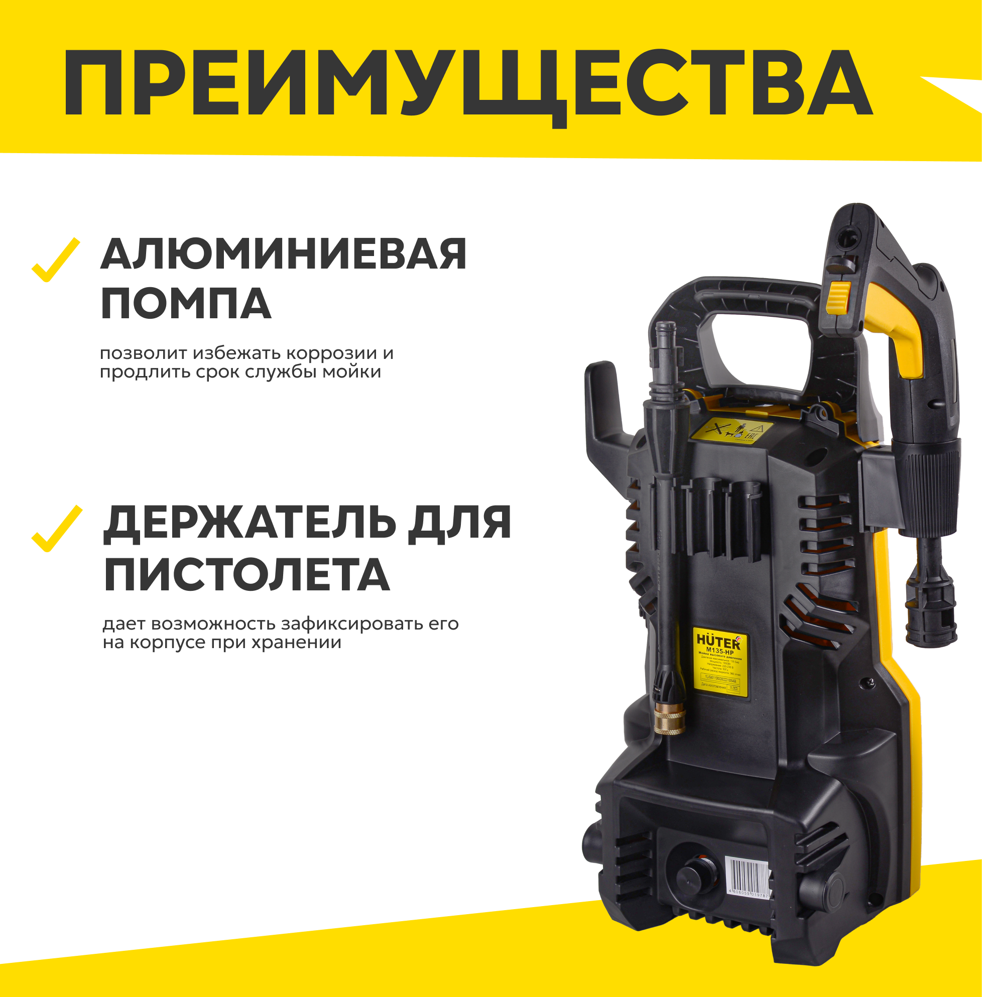 Мойка высокого давления Huter M135-HP, 135 Бар, 1650Вт, автомойка с пеногенератором (Huter M-Compact) интересное: