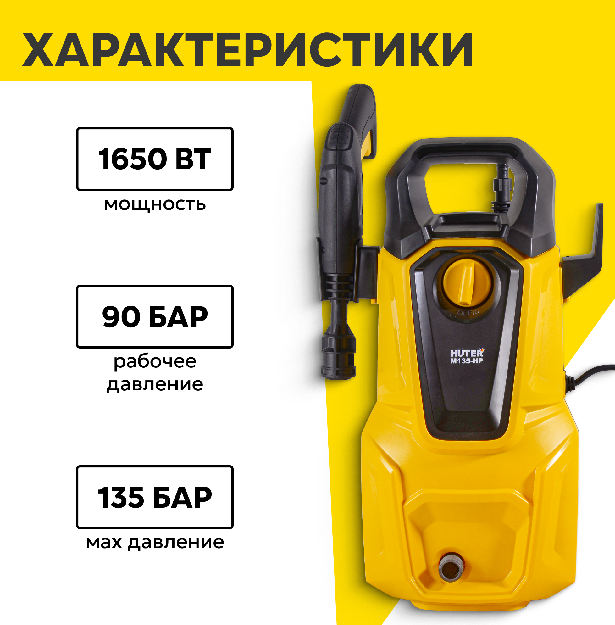 Купить Мойка высокого давления Huter M135-HP, 135 Бар, 1650Вт, автомойка с пеногенератором (Huter M-Compact)
