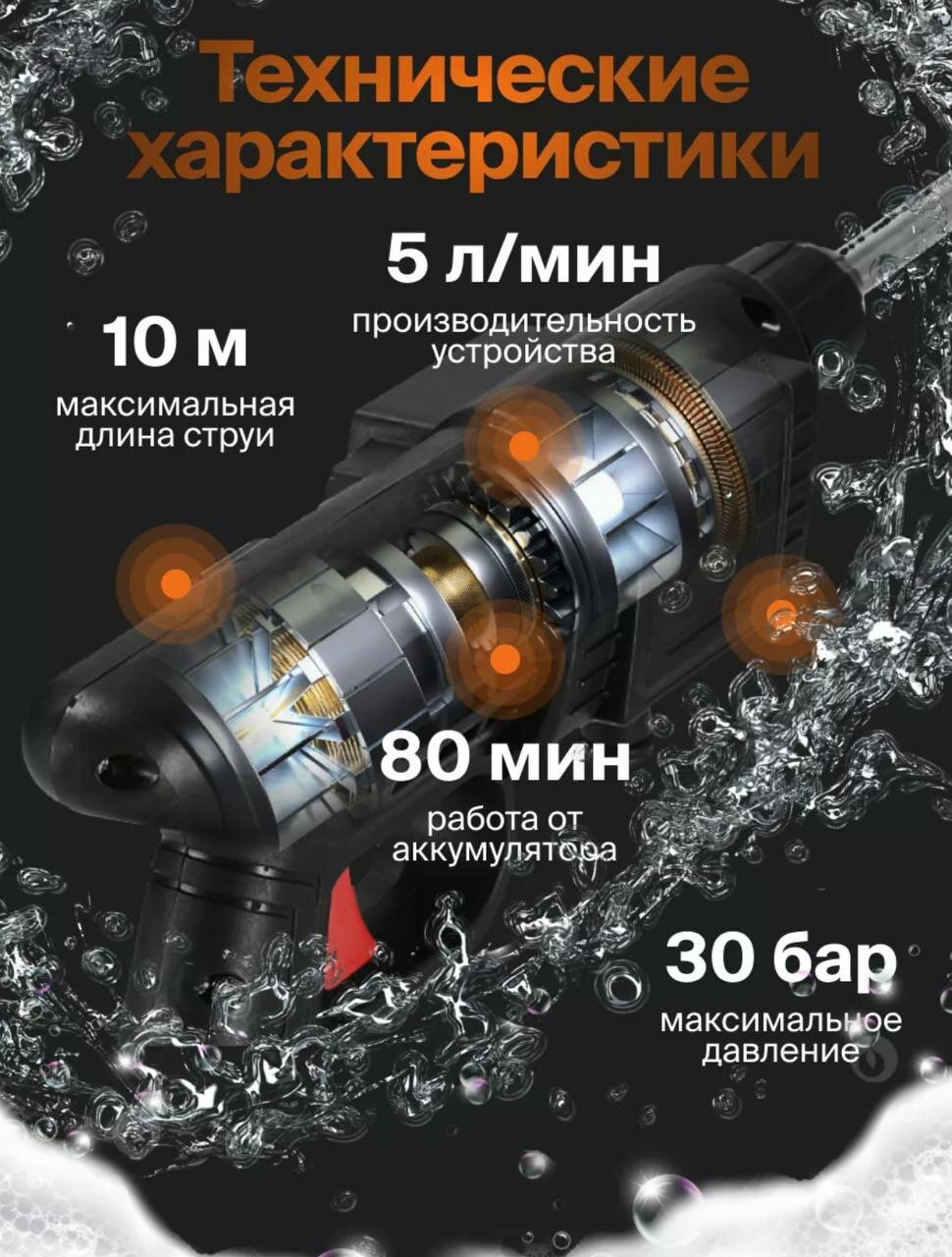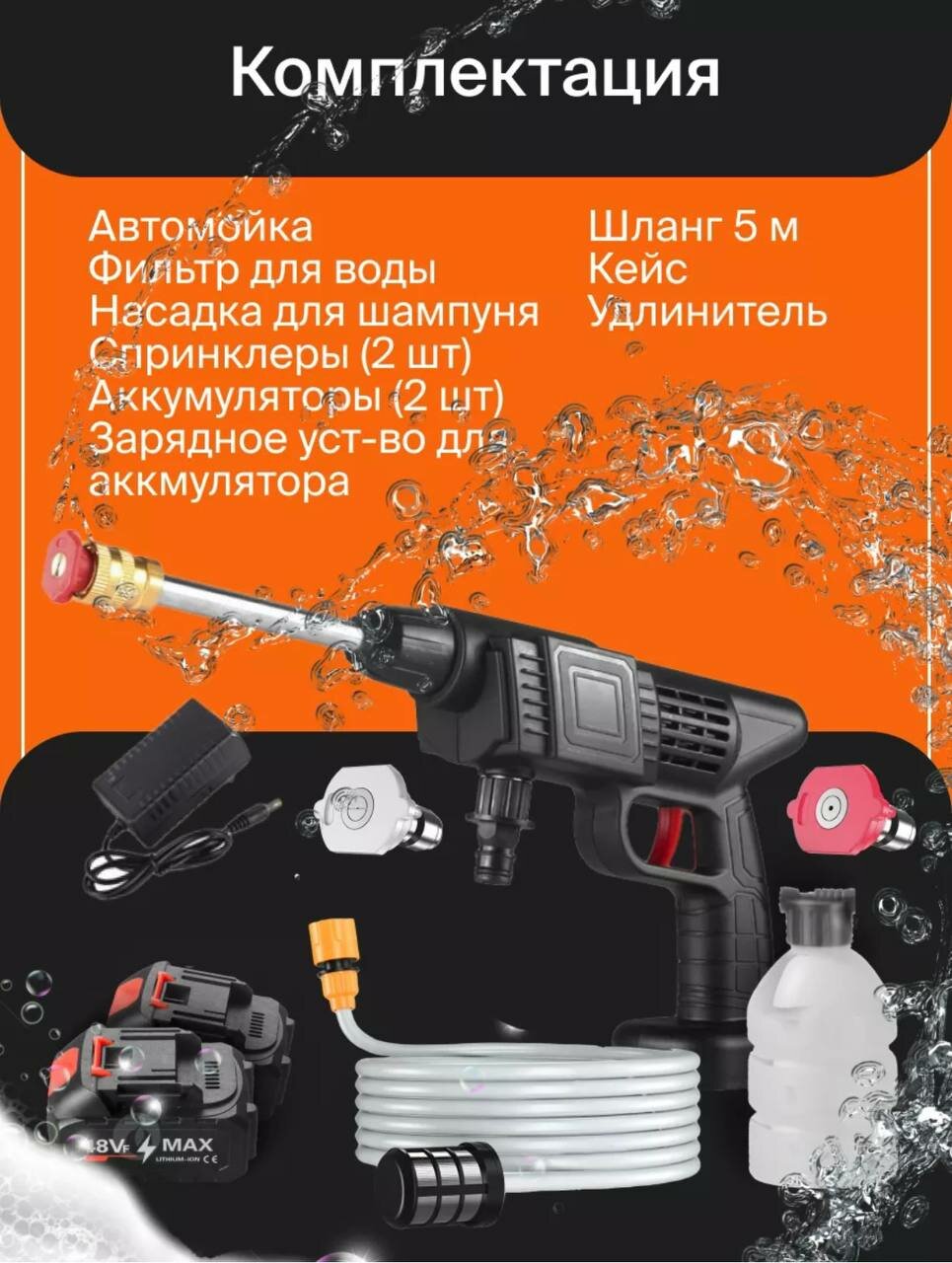 Купить Мойка высокого давления аккумуляторная для автомобиля, минимойка с пистолетом и пенообразователем в кейсе для дачи