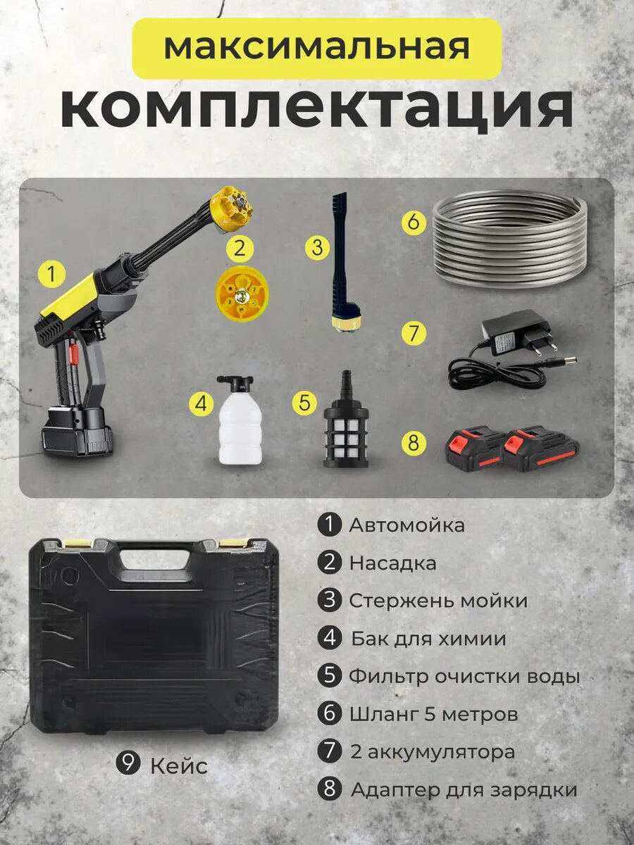 Мойка высокого давления аккумуляторная для автомобиля и дачи, в кейсе, 2хАКБ 24V интересное:
