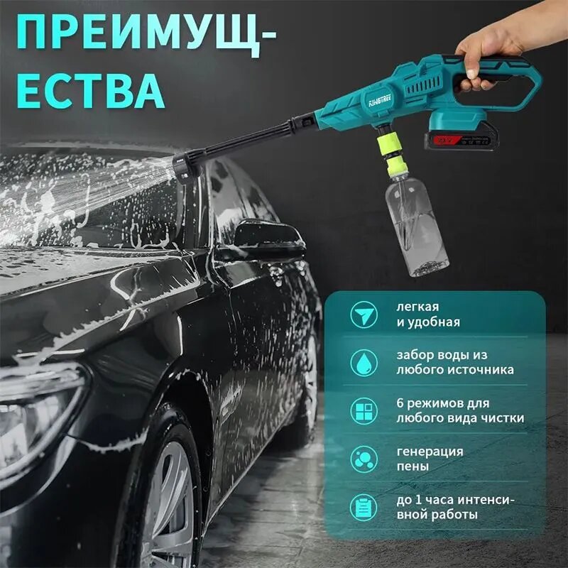 Пистолет высокого давления Kingtree, для автомойки, аккумулятор 21 В, расстояние распыления до 15 м интересное: