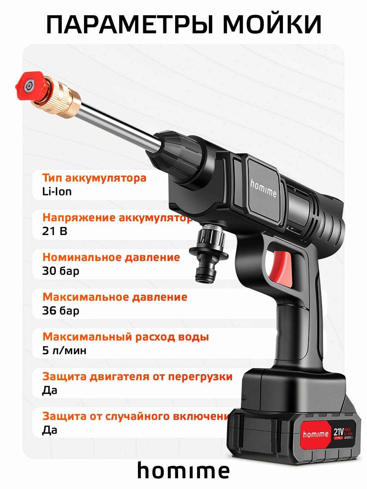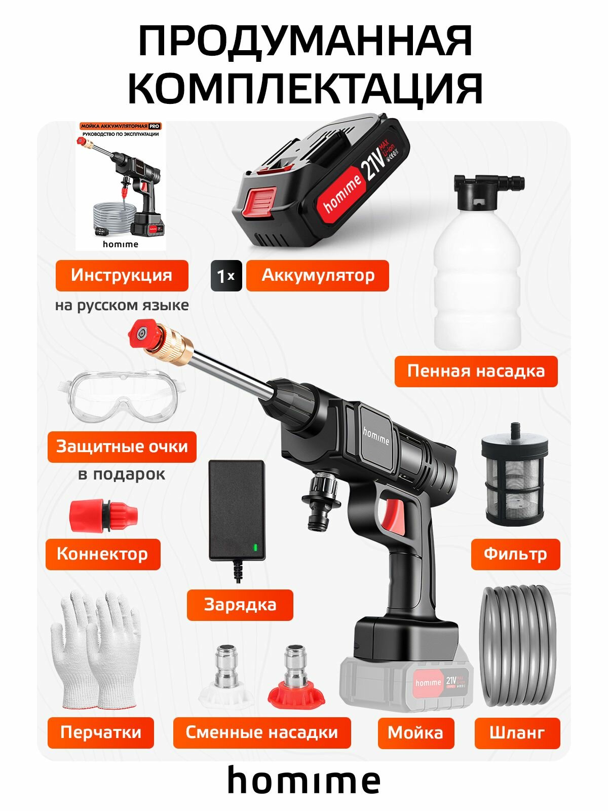 Портативная автомойка Homime Power, беспроводная, мойка высокого давления, пистолет керхер, 1 аккумулятор, кейс интересное:
