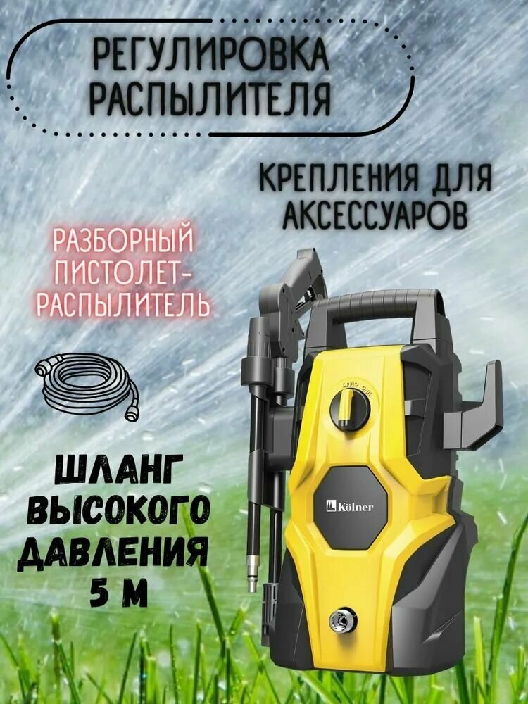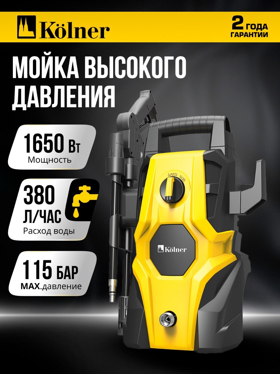 Мойка высокого давления KOLNER, KHPW 1650FSP, 1650Вт, 115бар, жёлтая интересное: