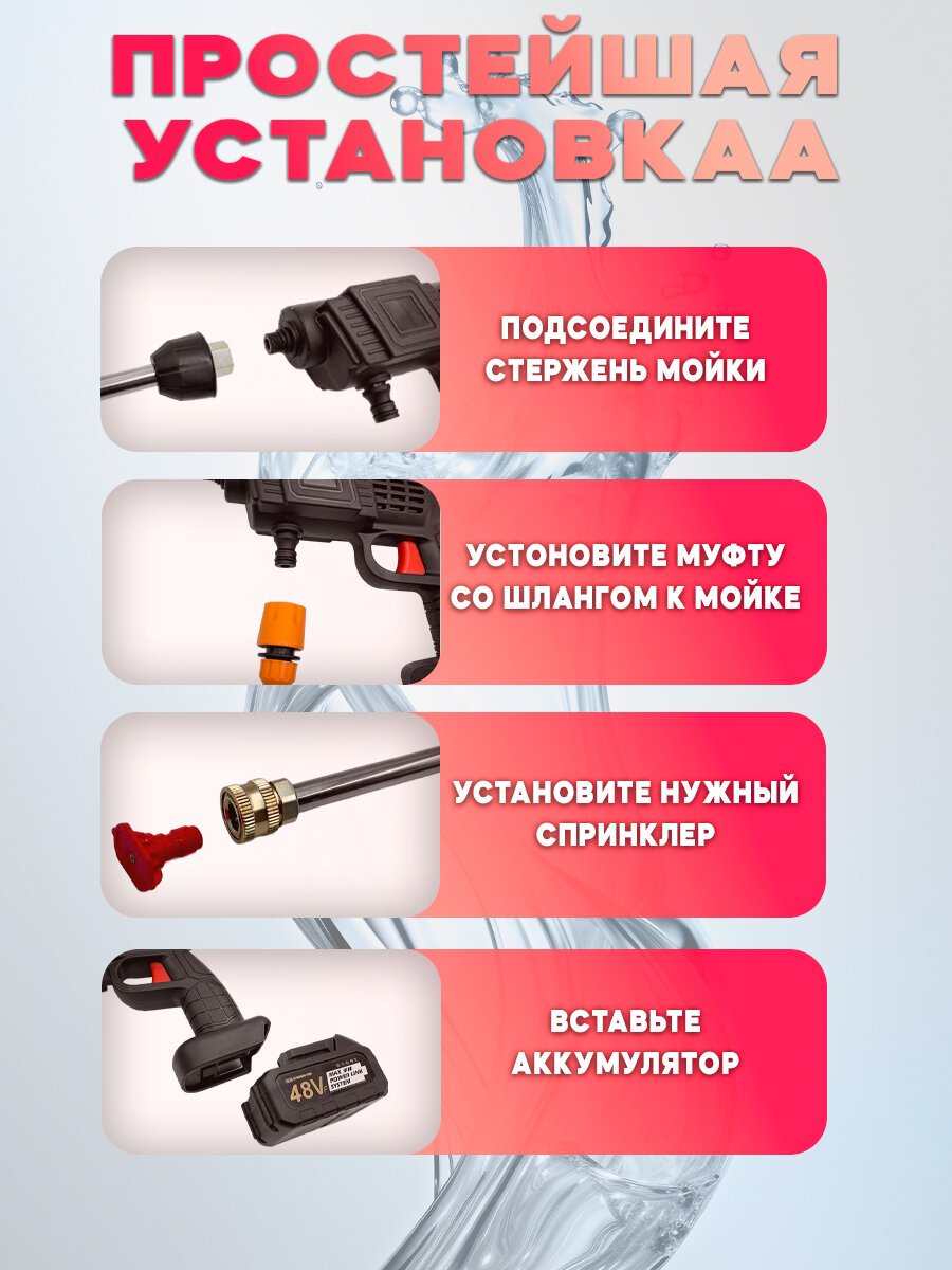 Мойка высокого давления аккумуляторная для автомобиля, автомойка с двумя АКБ, черная интересное: