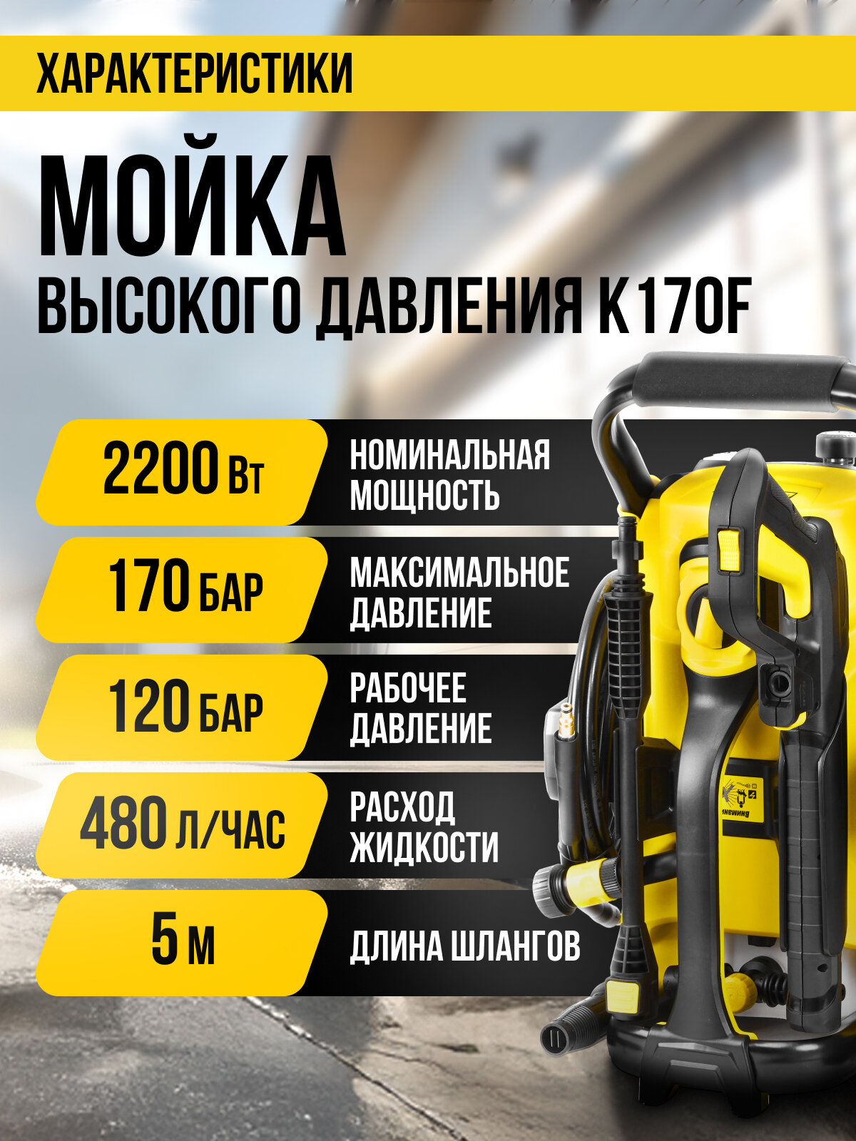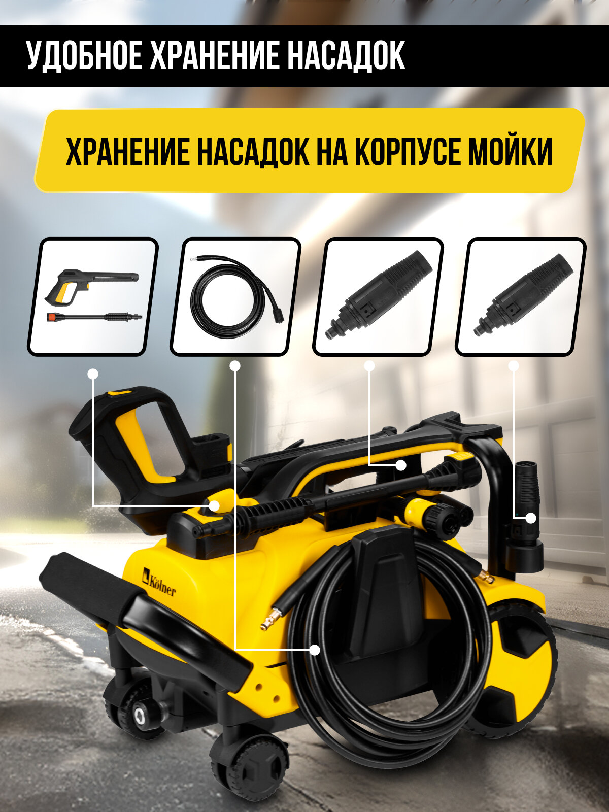 Мойка высокого давления Kolner K170F, 2200 Вт, 170 бар, с отсеком для принадлежностей интересное: