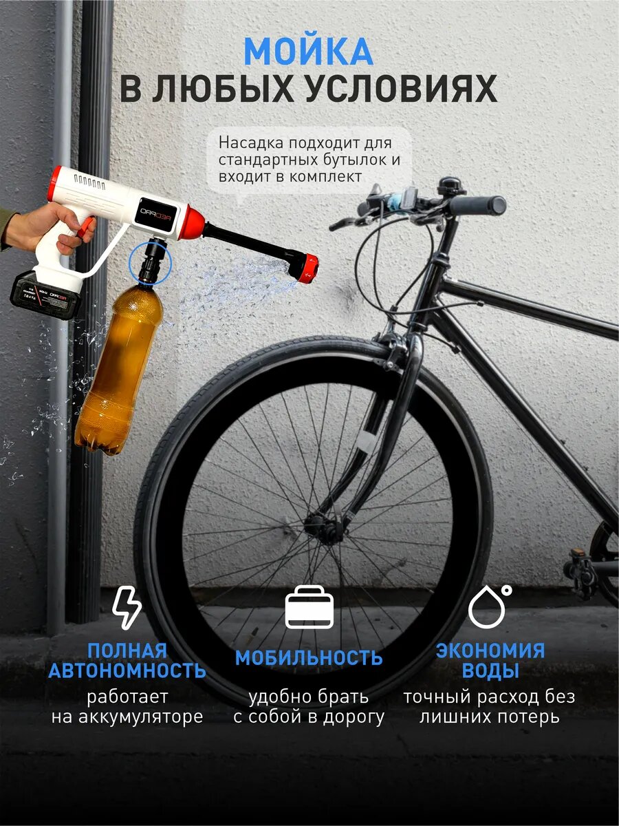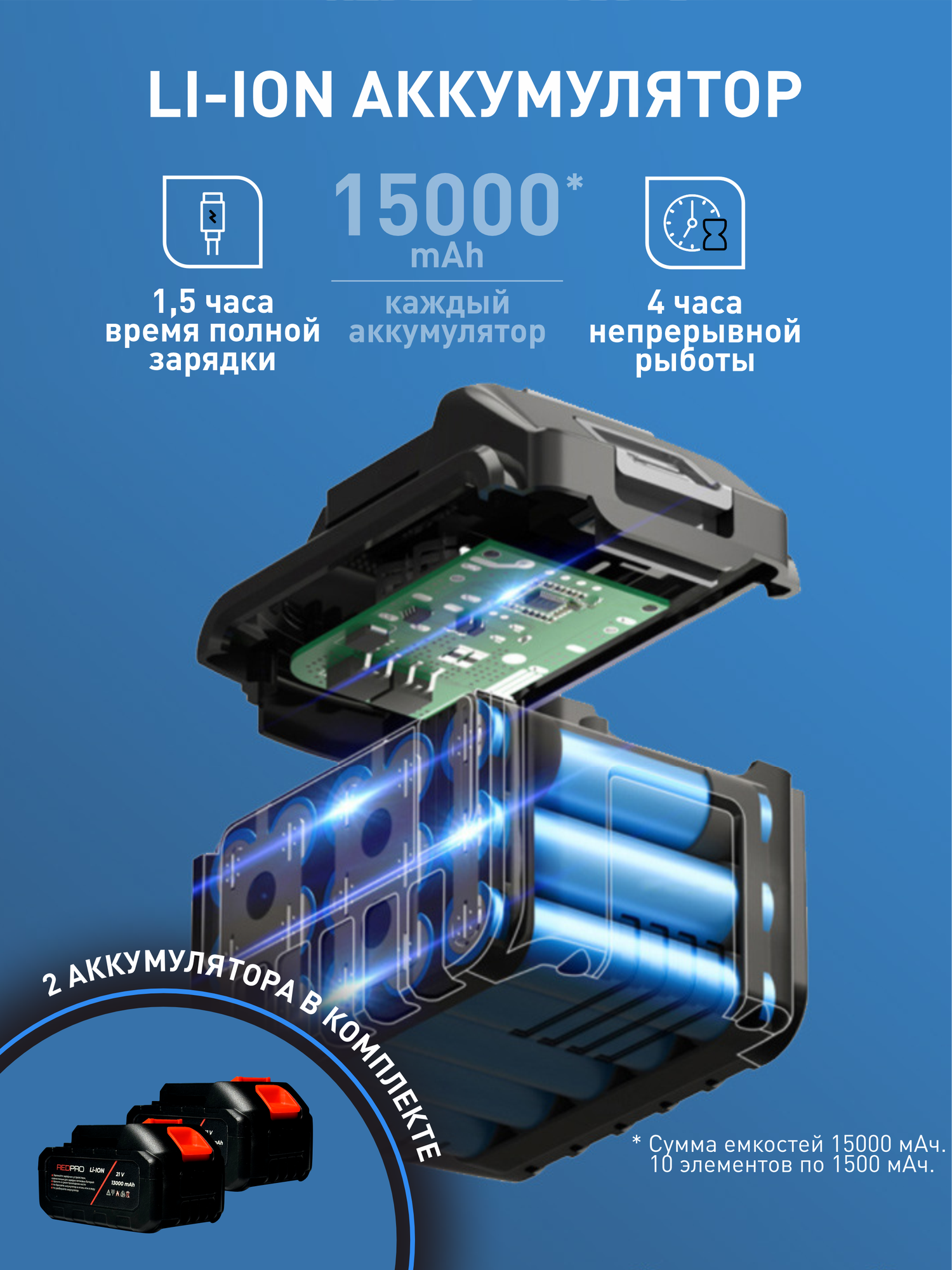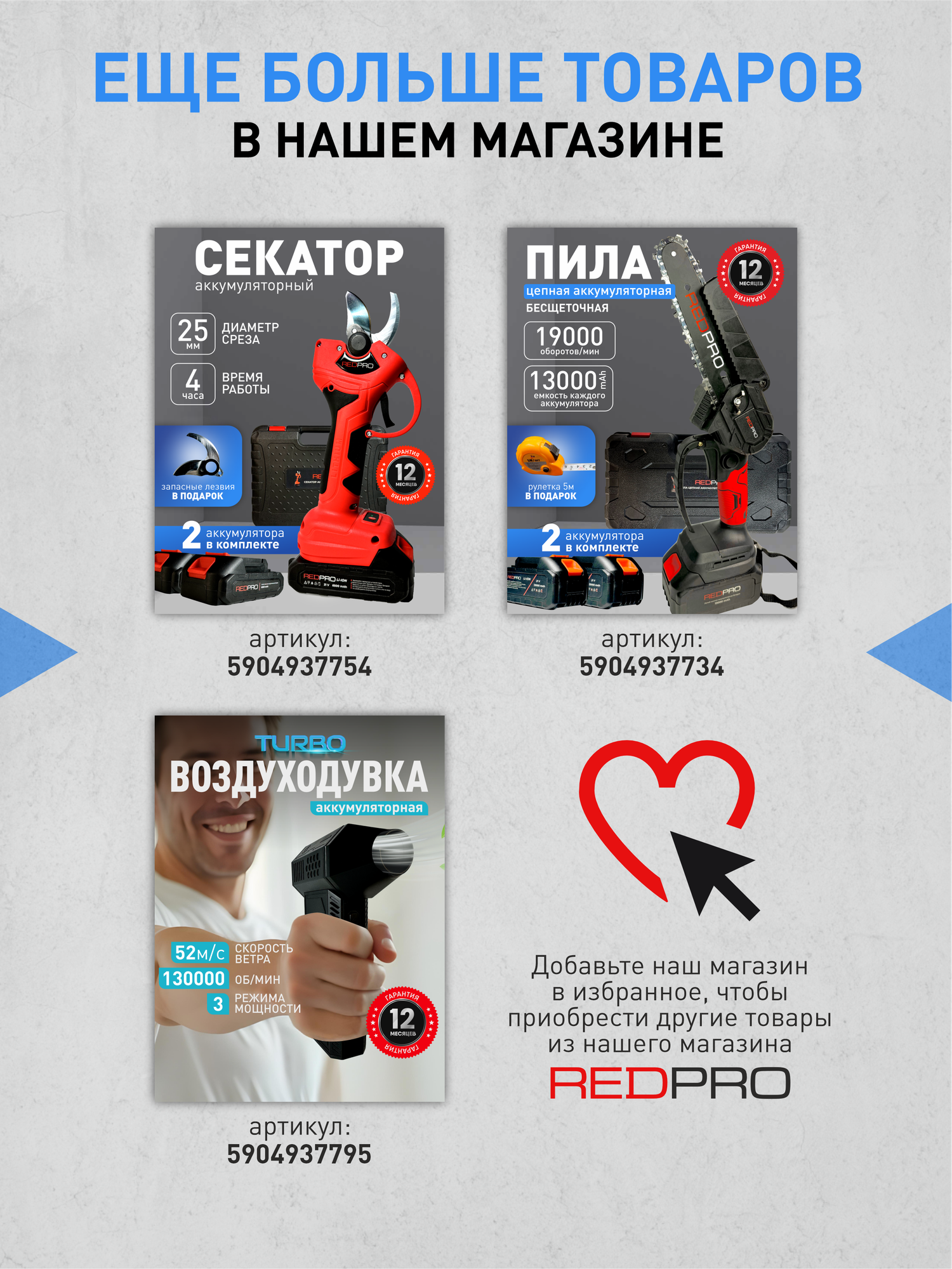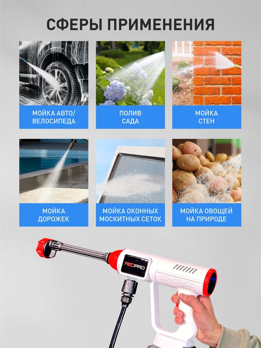 Мойка высокого давления REDPRO, автомойка, 50 Бар, 200Вт, бесщеточная, 2 аккумулятора по 15000 мАч, кейс, шланг 10 м. интересное: