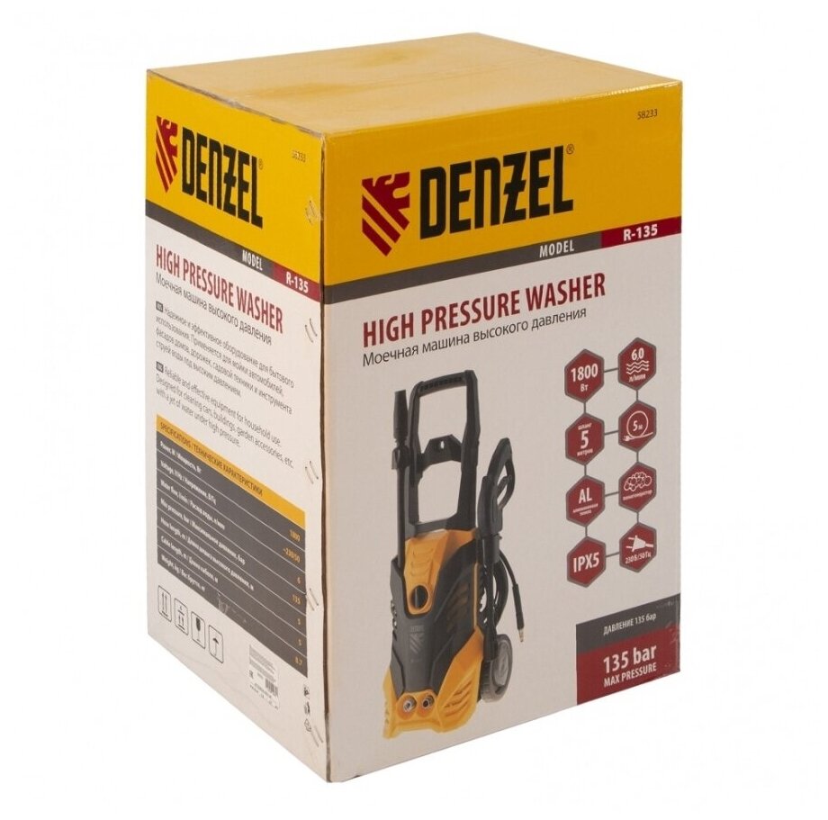 Ниже Вы можете прочитать отзывы на Мойка высокого давл Denzel R-135,1800 Вт,135 бар,6 л/мин, колесная 58233, ознакомится с подробными характеристиками, посмотреть интересные обзоры и фотографии на Мойка высокого давл Denzel R-135,1800 Вт,135 бар,6 л/мин, колесная 58233.