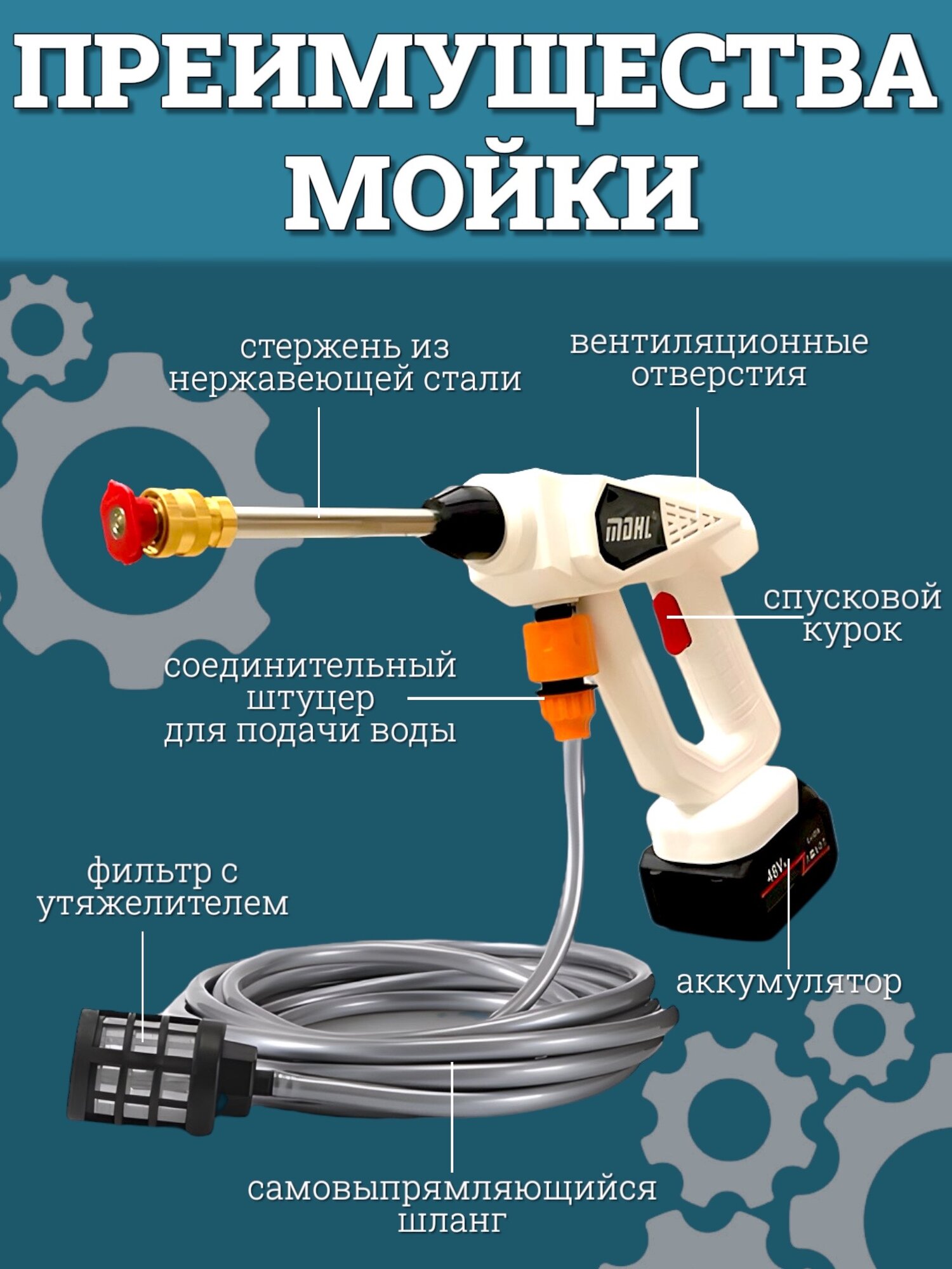 Мойка высокого давления Аккумуляторная в кейсе, Портативная автомойка с АКБ, Садовый опрыскиватель аккумуляторный, 21В интересное: