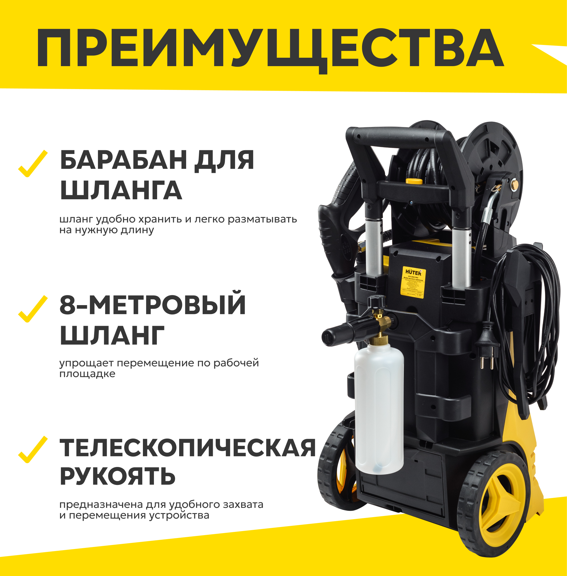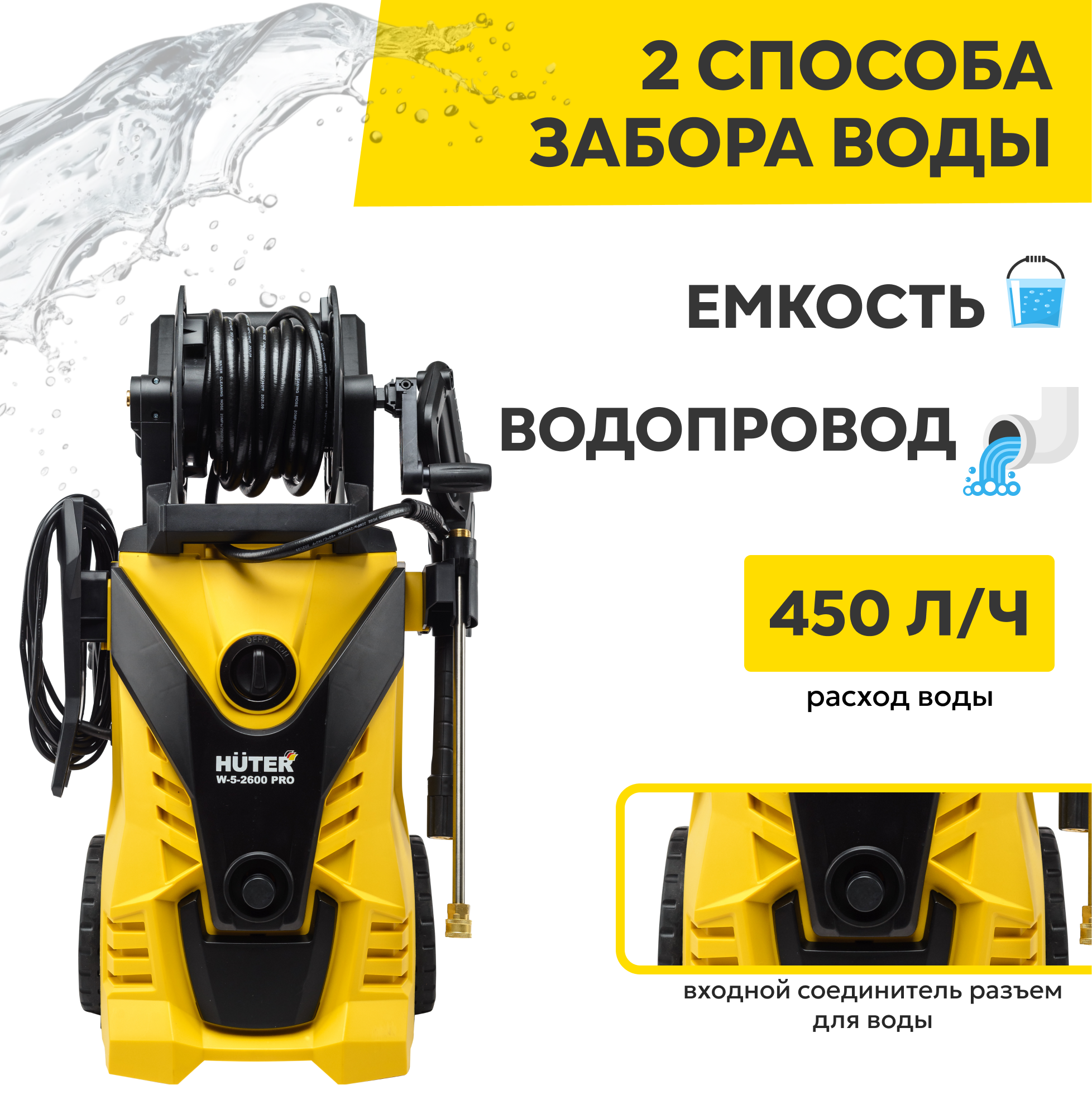 Мойка Huter W-5-2600 PRO, 2600 Вт, 210 Бар, 450 л/ч, подача воды: водопровод/емкость интересное: