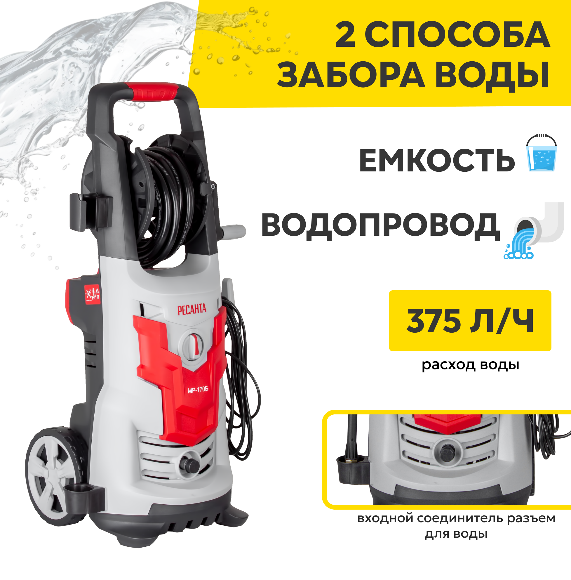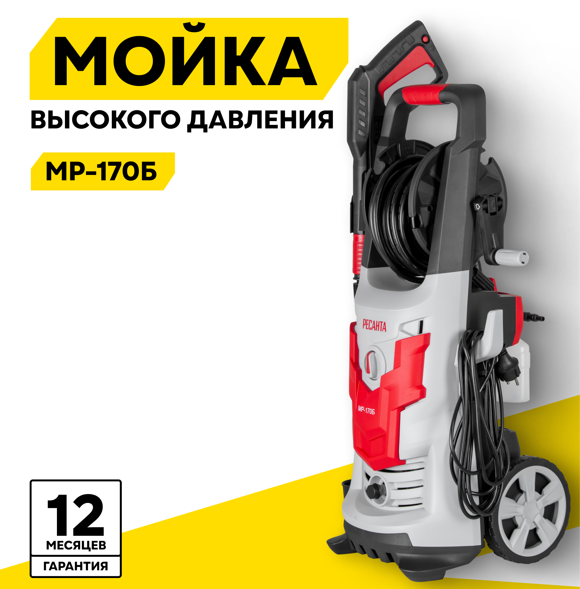 Купить Мойка высокого давления РЕСАНТА МР-170Б, 1900 Вт, 170 Бар, 375 л/ч, шланг – 8 м, барабан для шланга