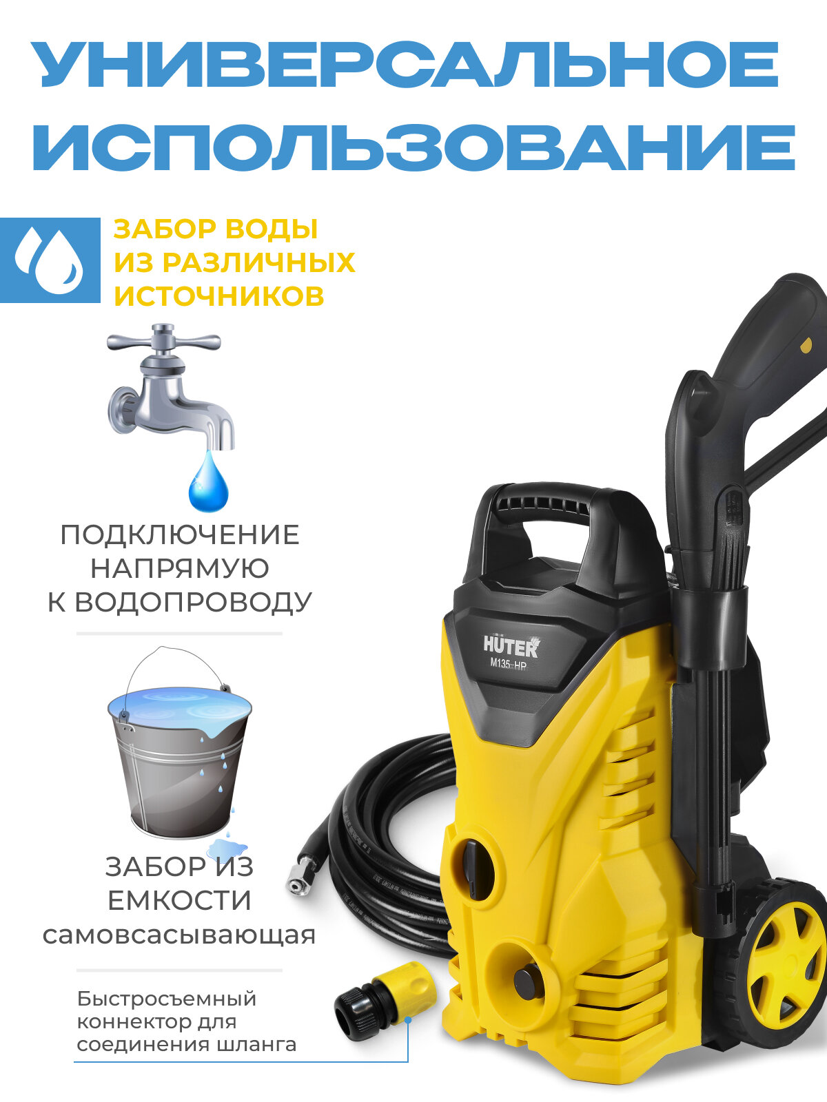 Купить Мойка Huter M135-HP, производительность 360 л/ч, мax давление воды 135 бар, мощность 1.65 кВт