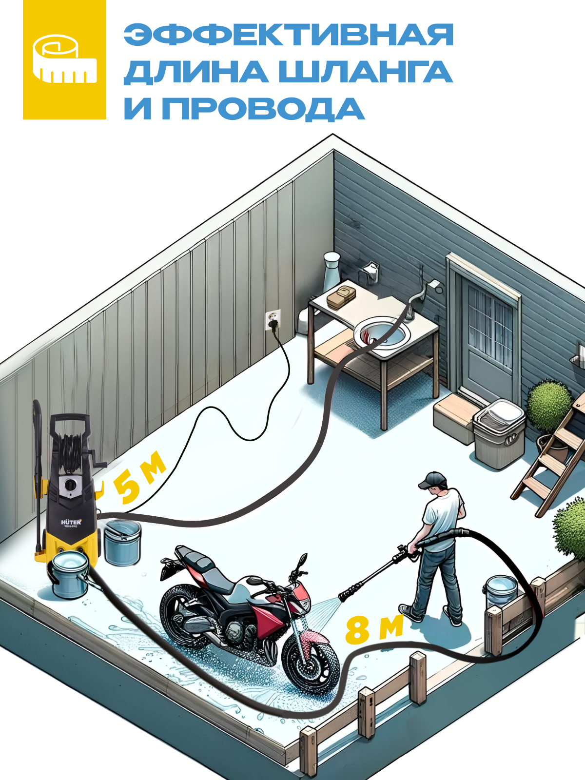 Мойка Huter M195-PW-PRO, производительность 4520 л/ч, мax давление воды 195 бар, мощность 2.5 кВт