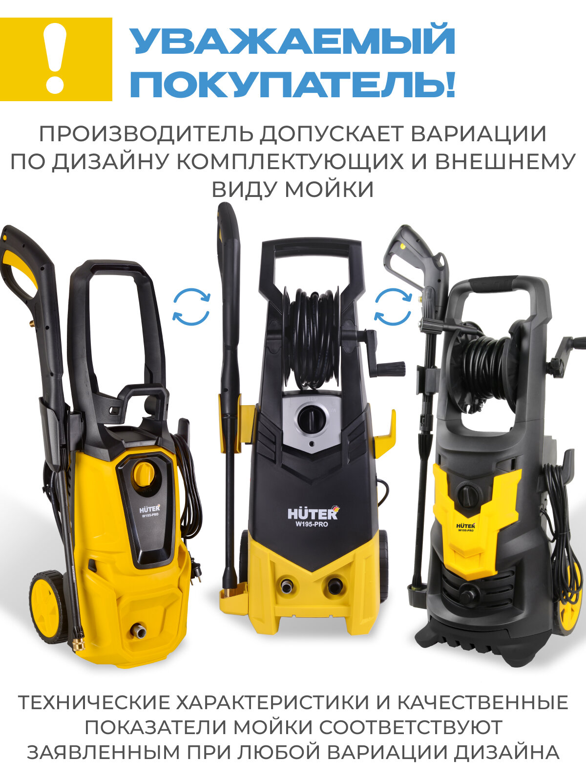 СохранитьМойка Huter W195-PRO, производительность 420 л/ч, мax давление воды 195 бар, мощность 2.5 кВт интересное: