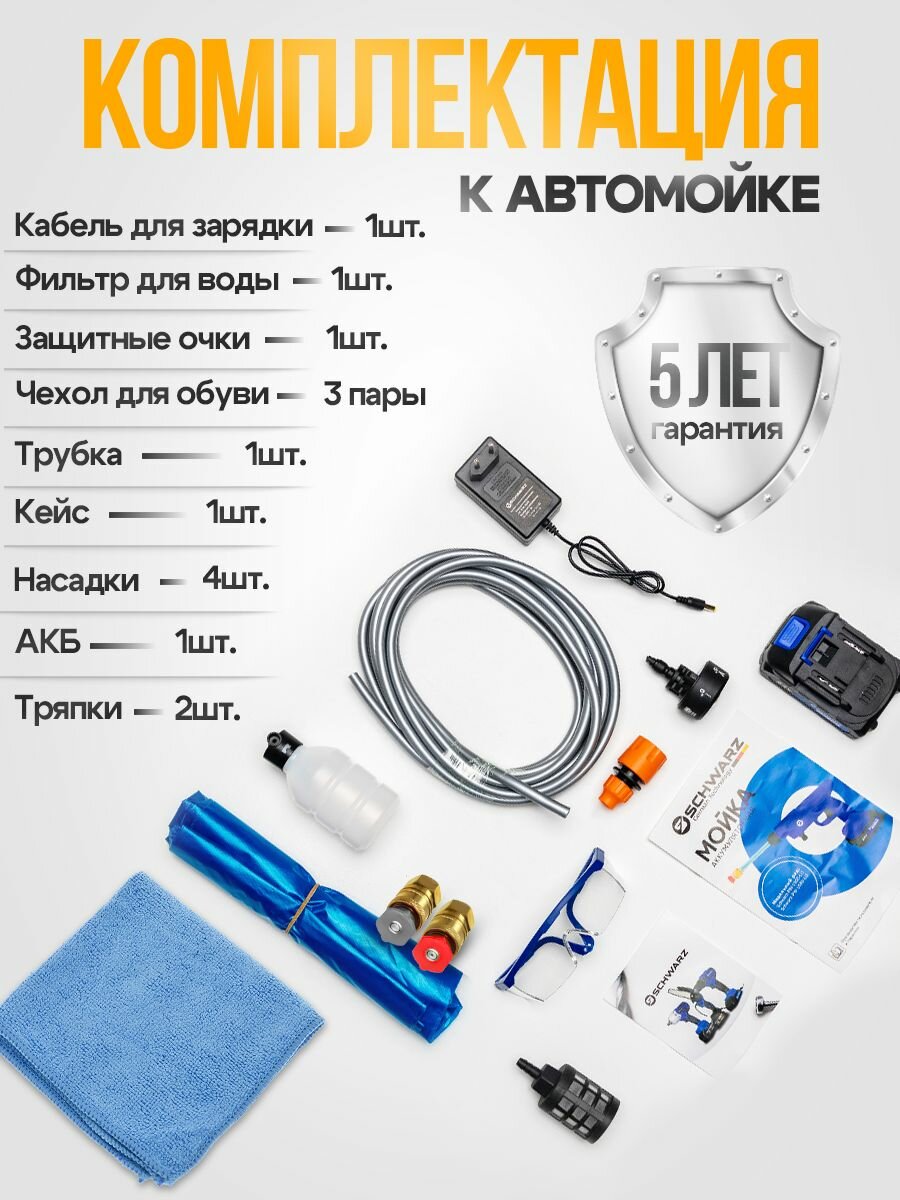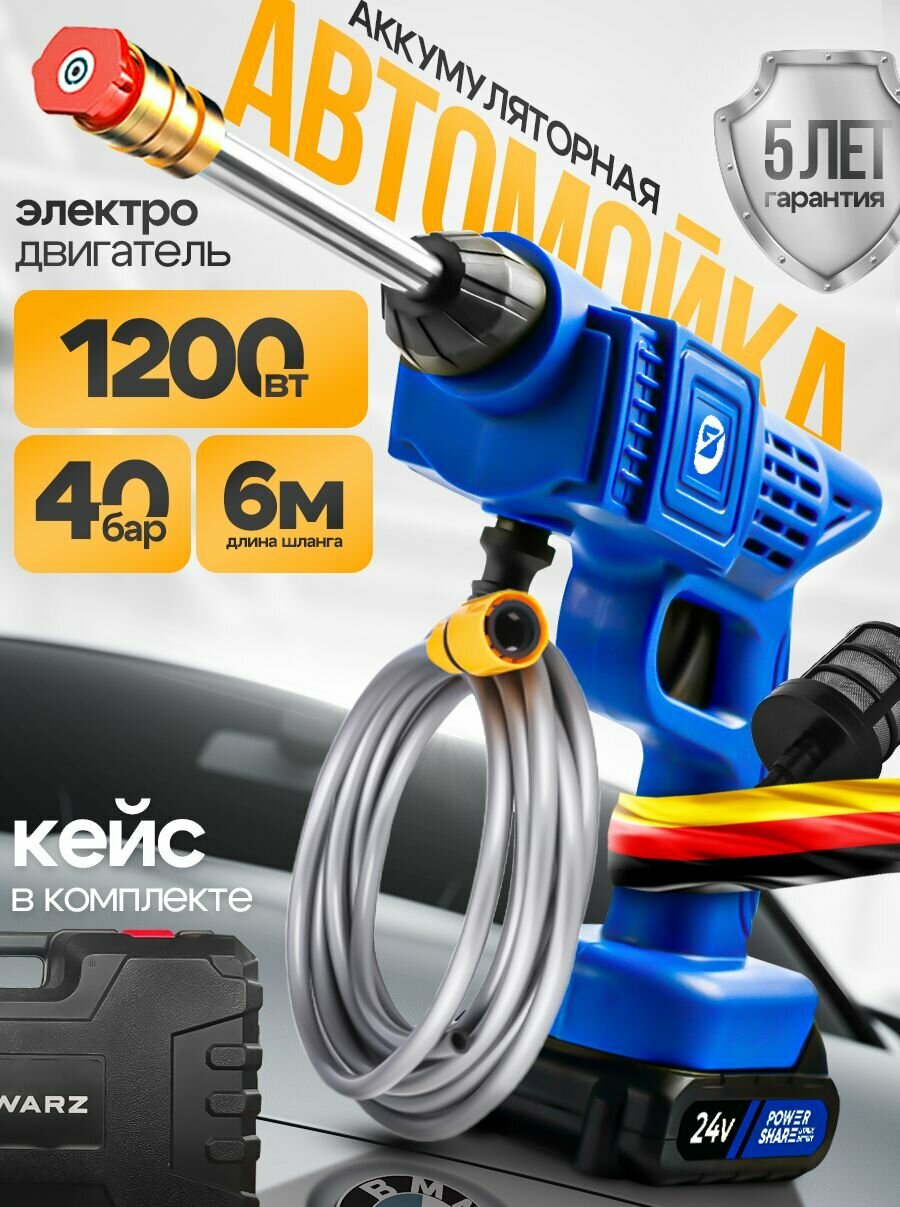 Аккумуляторная мойка высокого давления SCHWARZ 1200 Вт / Портативная мойка высокого давления 40 бар интересное: