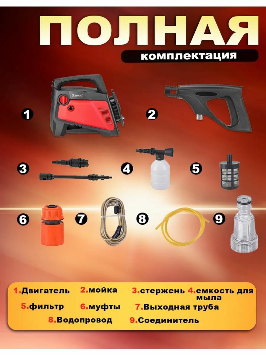Насадка высокого давления, для минимоек, угольная щетка, 800Вт, шланг 9м, красная