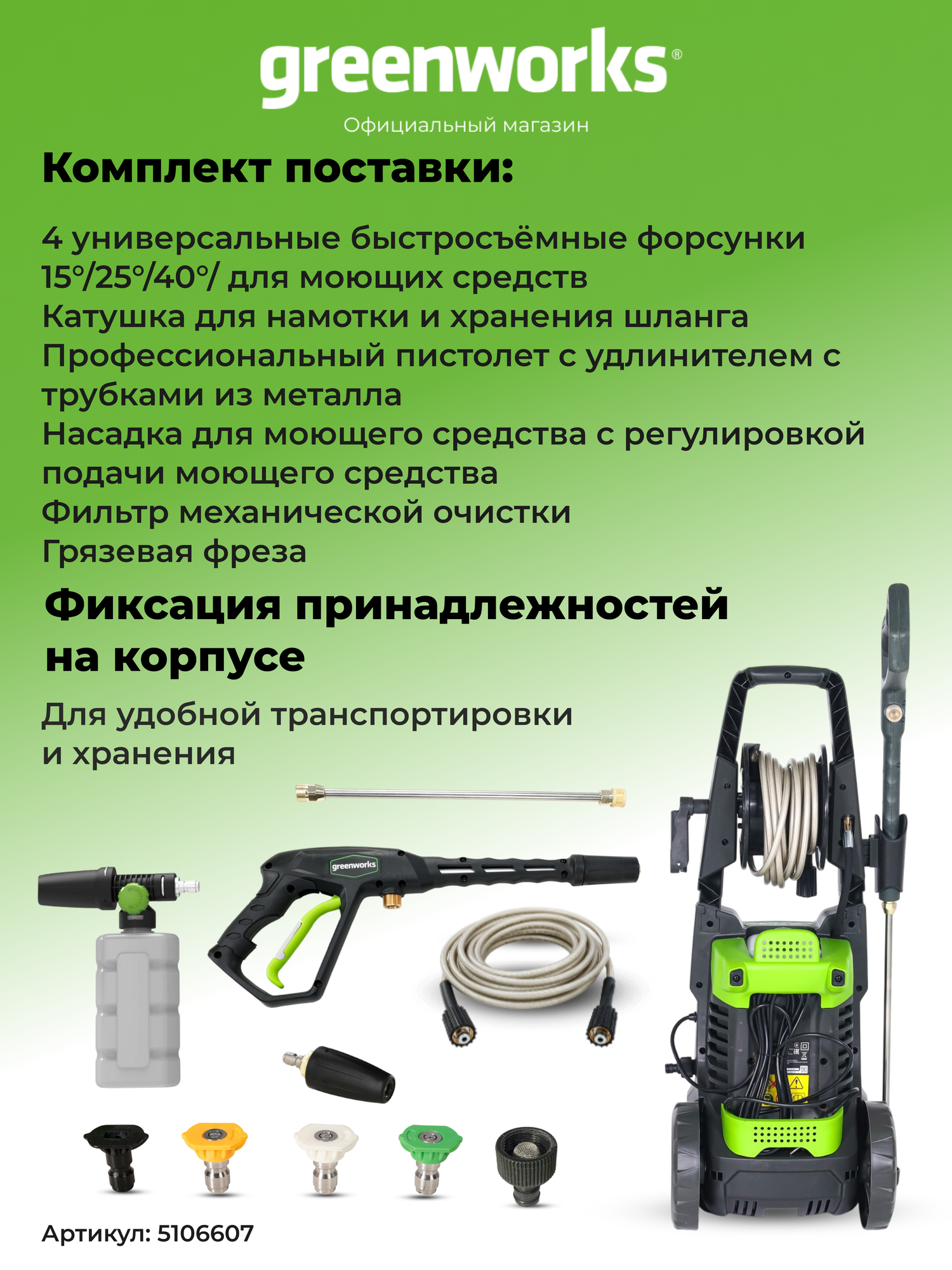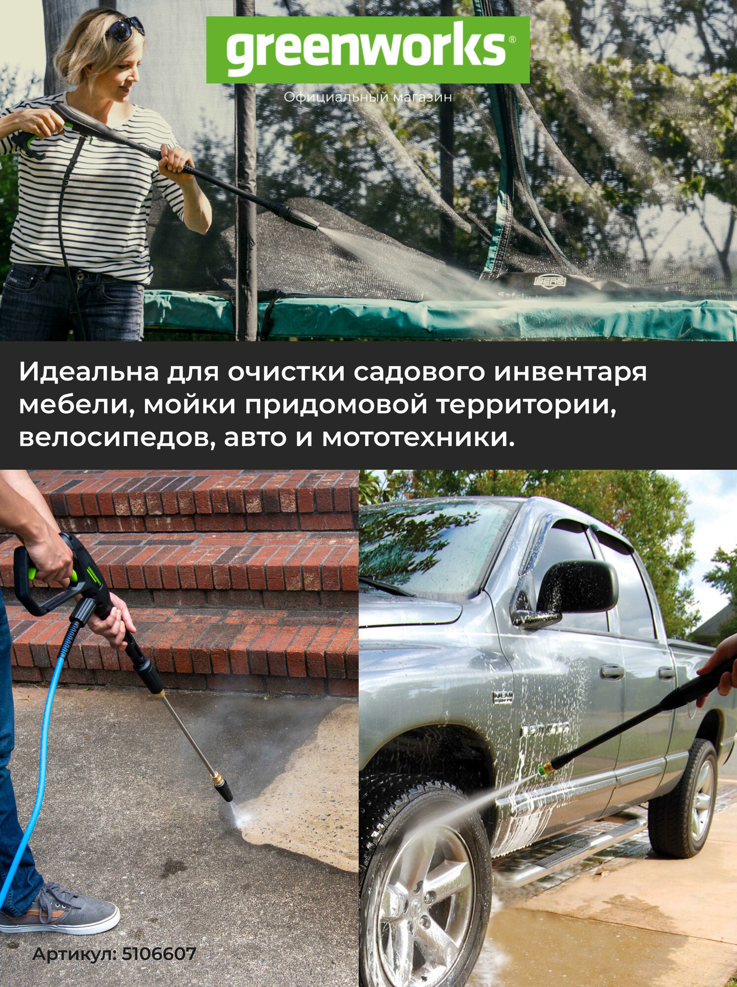 Мойка высокого давления электрическая Greenworks GPWG5II, 2000 Вт, 140 бар 5106607 интересное: