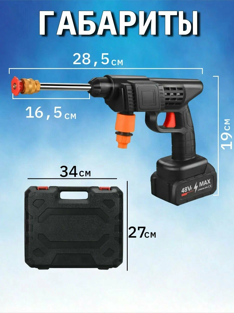 Купить Аккумуляторная мойка высокого давления, мощность 1000Вт, давление 30 Бар, 2 аккумулятора в комплекте