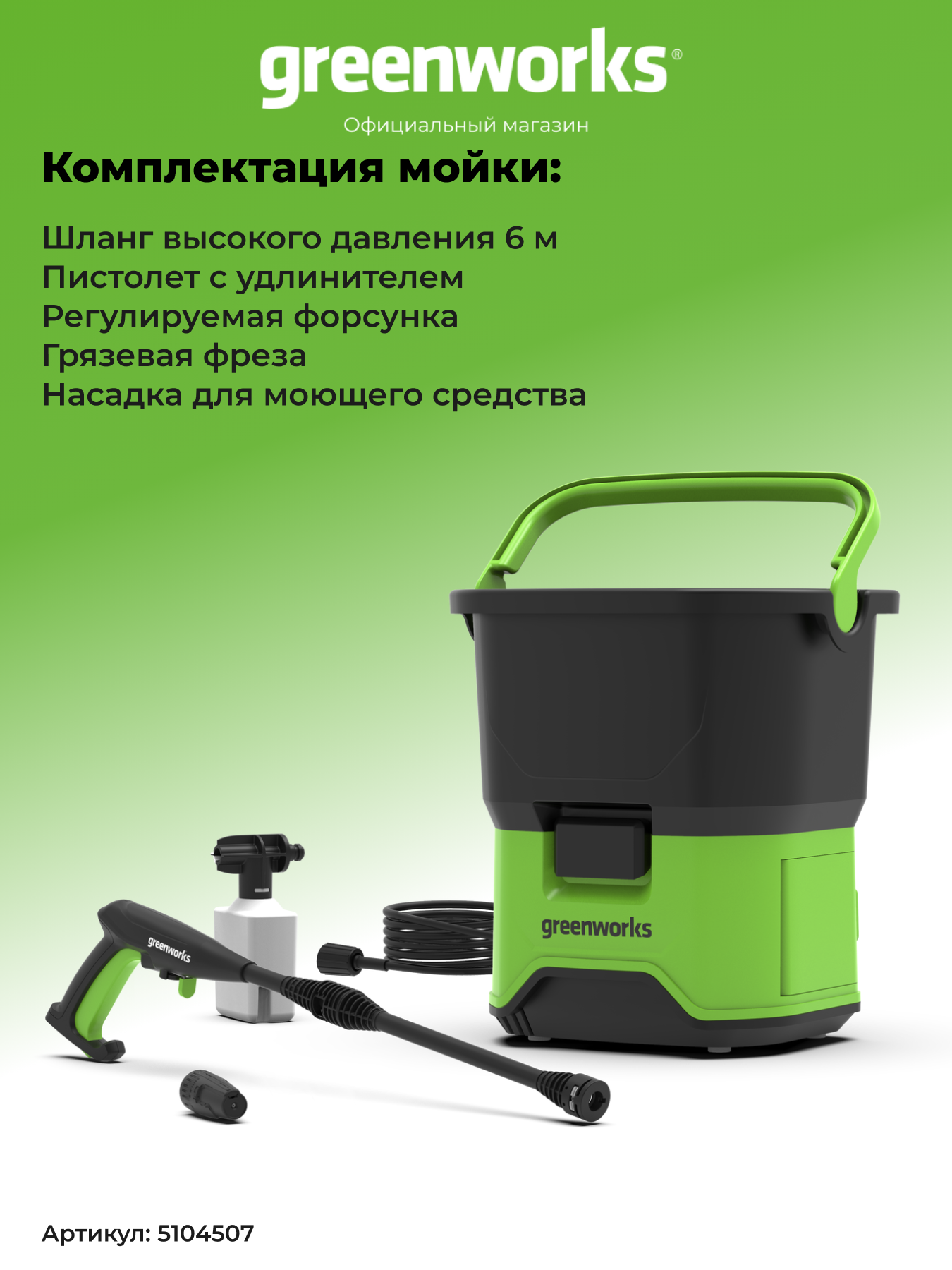 Мойка высокого давления аккумуляторная 40V, 650 Вт, 70 бар, 300 л/ч, минимойка 5104507, без АКБ и ЗУ интересное: