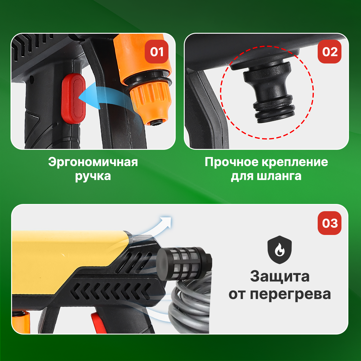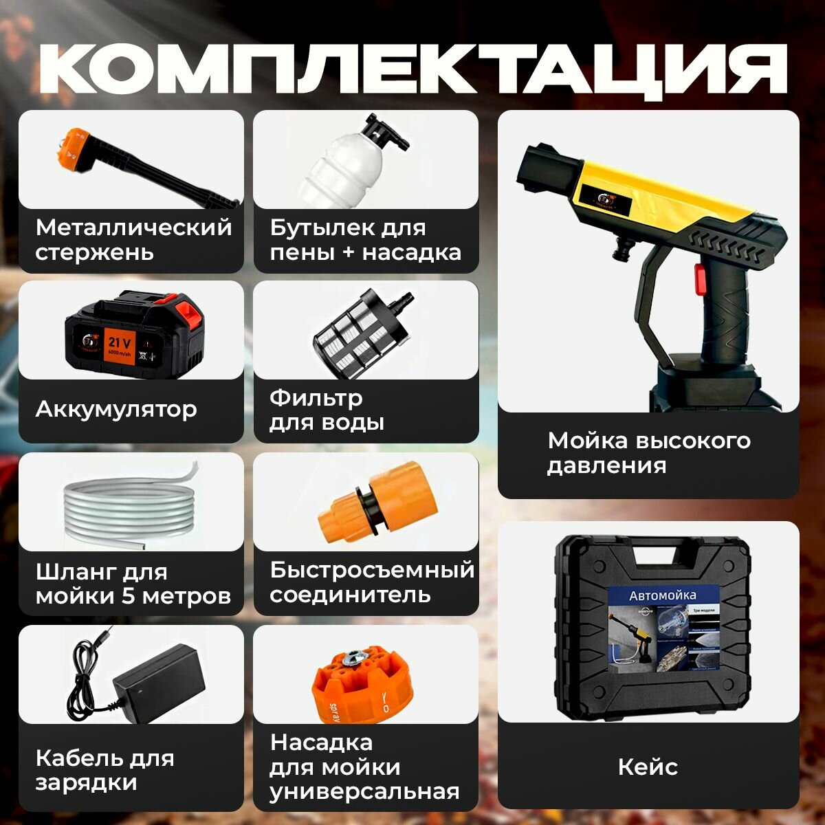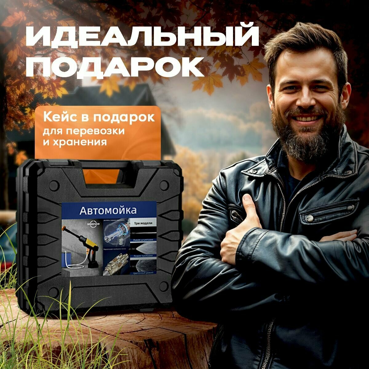 Аккумуляторная автомойка высокого давления, в кейсе с пистолетом и пенообразователем , с насадками 800Вт, 30бар интересное: