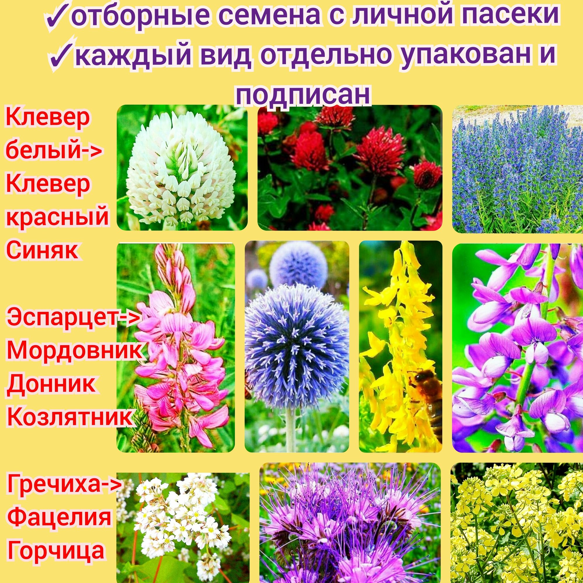 Купить Набор медоносных семян 10в1 (300шт) мордовник эспарцет фацелия синяк донник козлятни клевер горчица гречиха premium