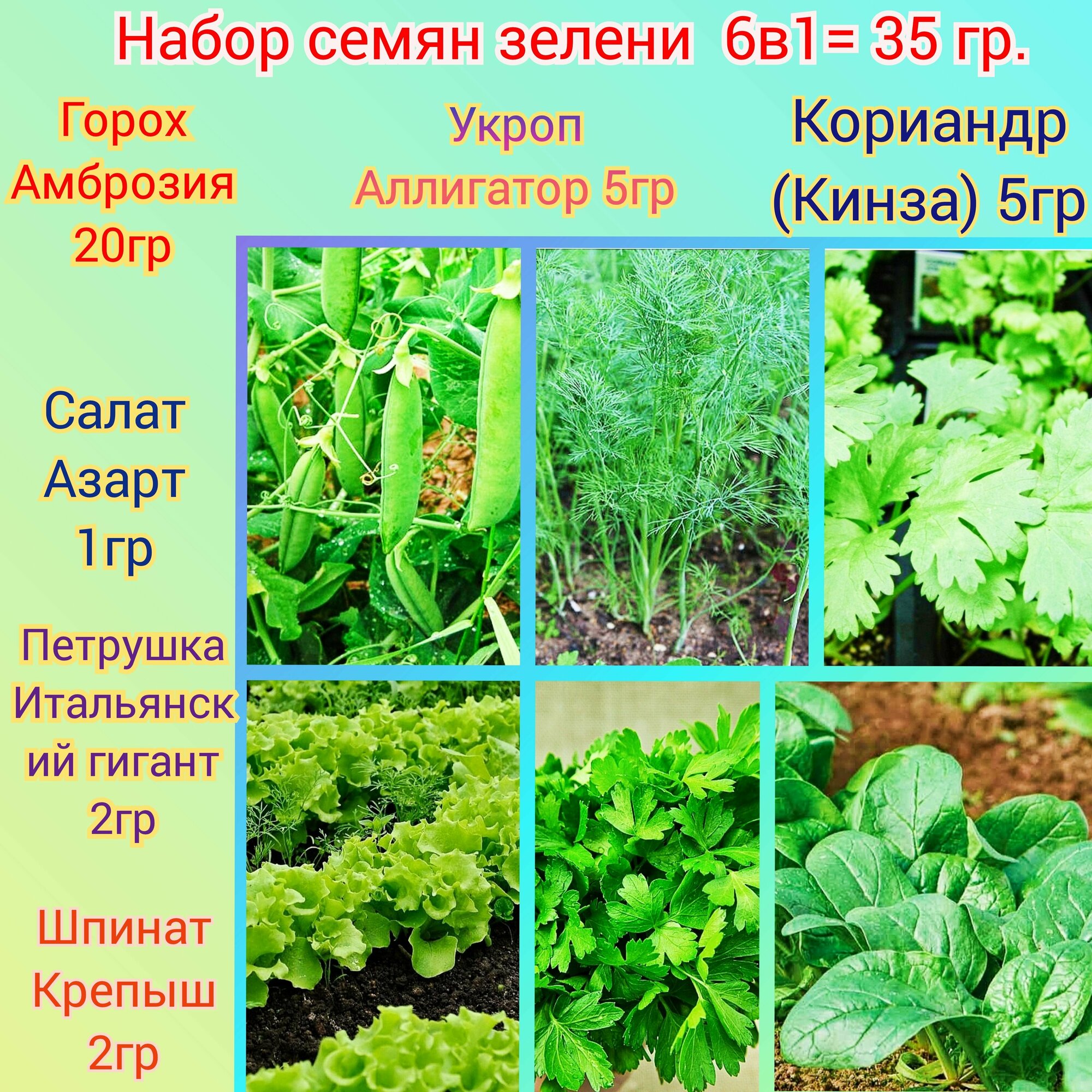 Купить Набор отборных семян зелени для огорода 35 грамм 6в1/ дачи/ микрозелень