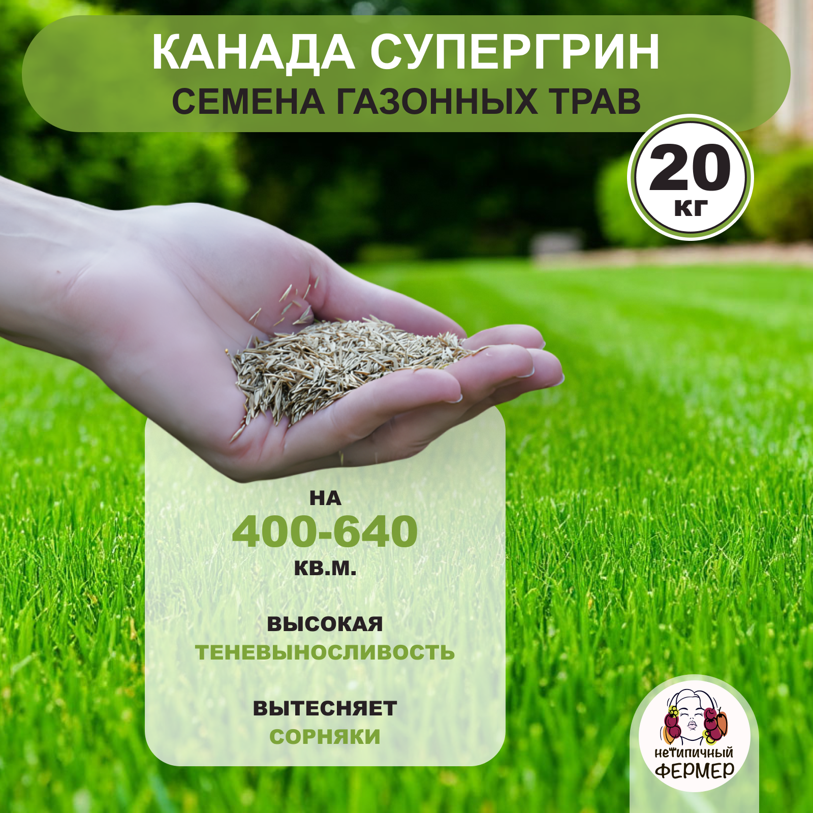 Семена газонной травы Нетипичный фермер "Канада Супергрин" 20кг, износоустойчивые интересное: