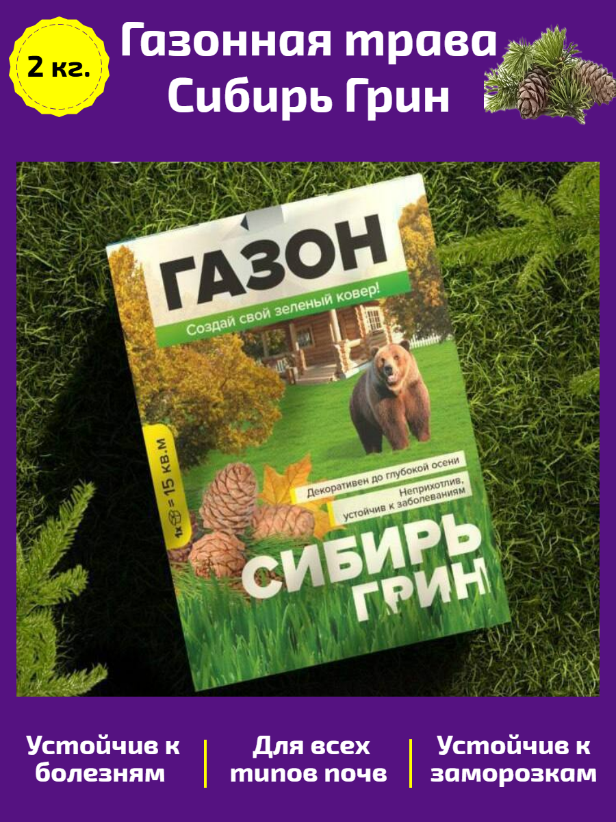 Газон Сибирь Грин 2 кг. В состав входят: Райграс Пастбищный , Овсяница Красная , Овсяница Луговая , Тимофеевка Луговая . интересное: