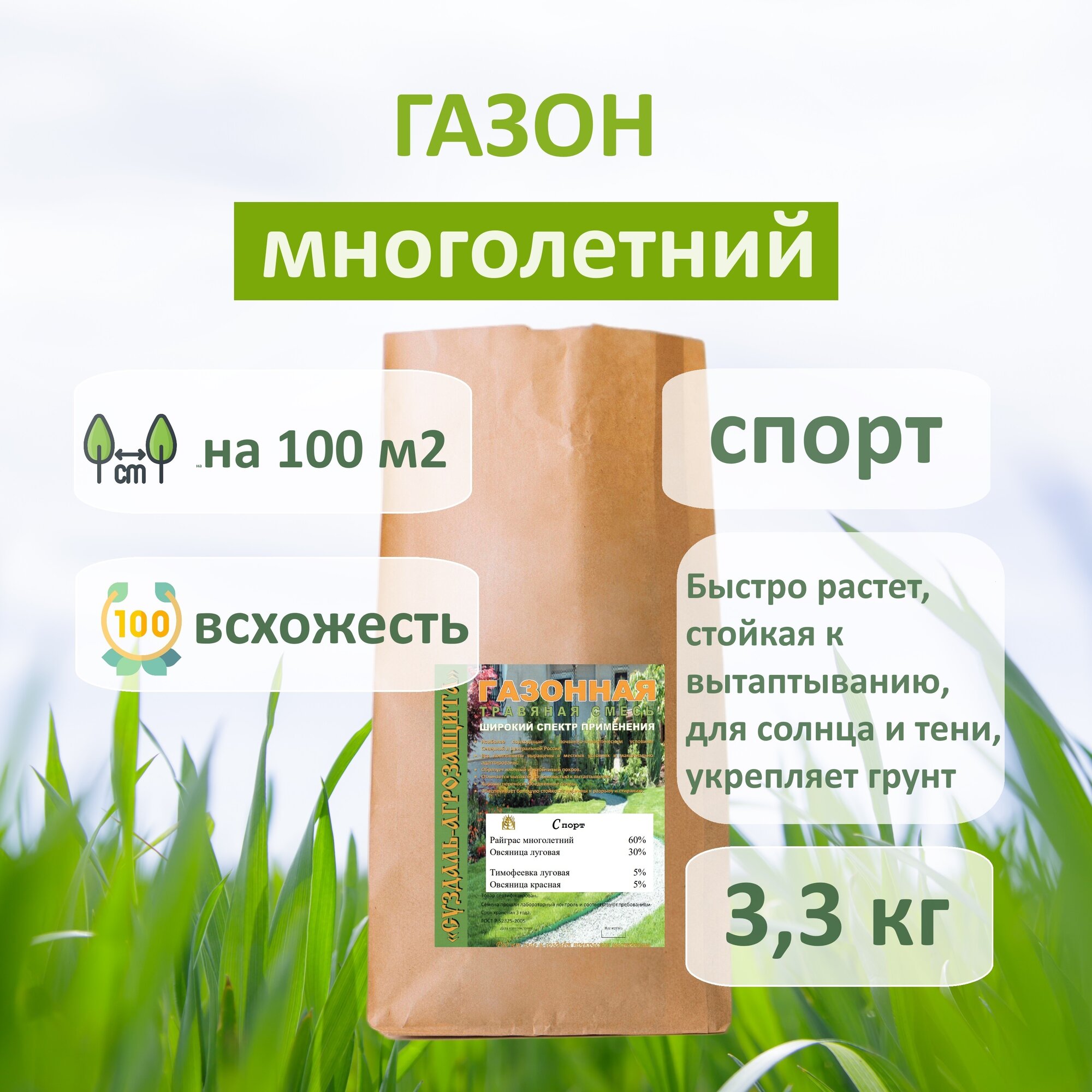 Семена многолетней газонной травы "Спорт" 3 кг интересное: