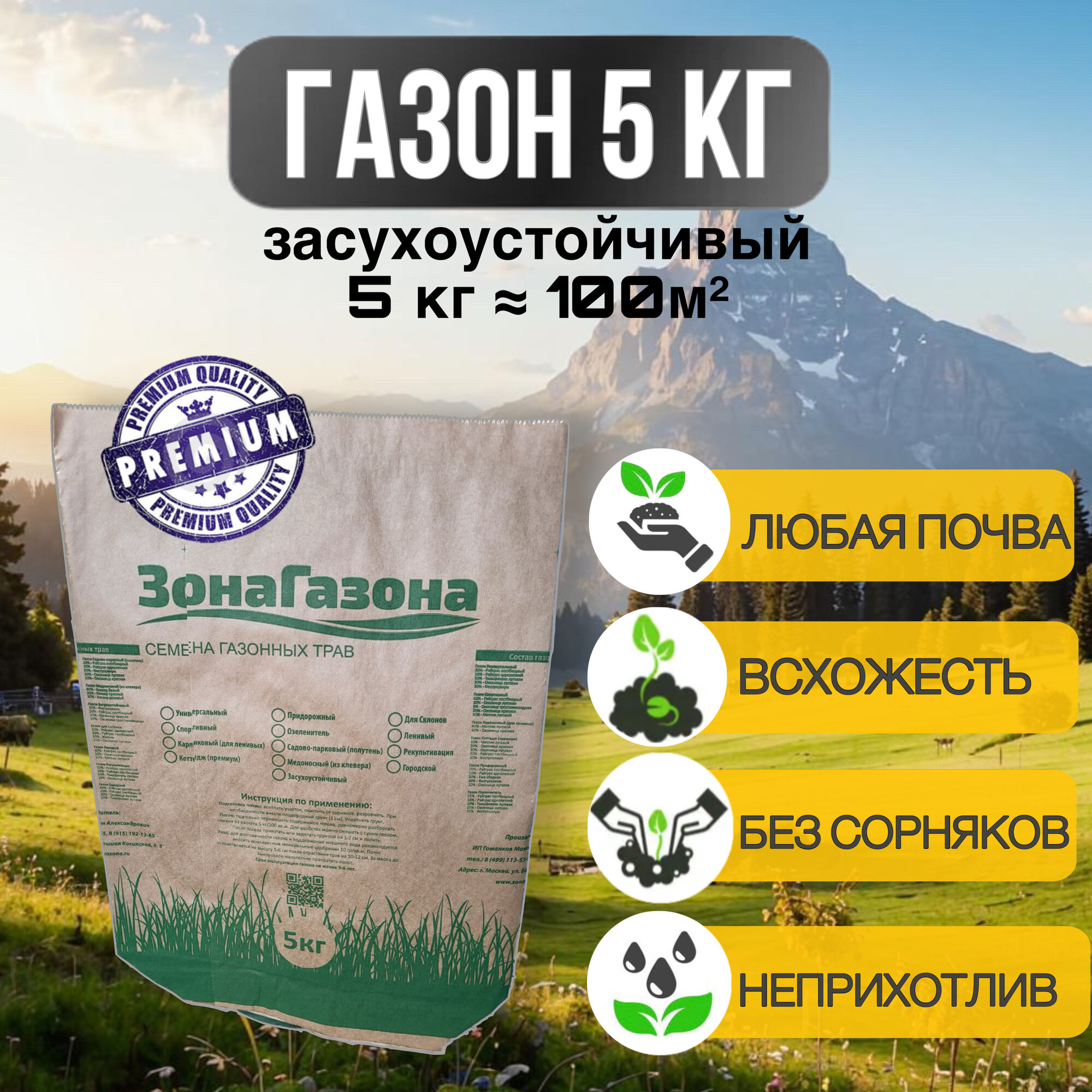 Газонная трава, семена, травосмесь, Газон Засухоустойчивый 5кг интересное: