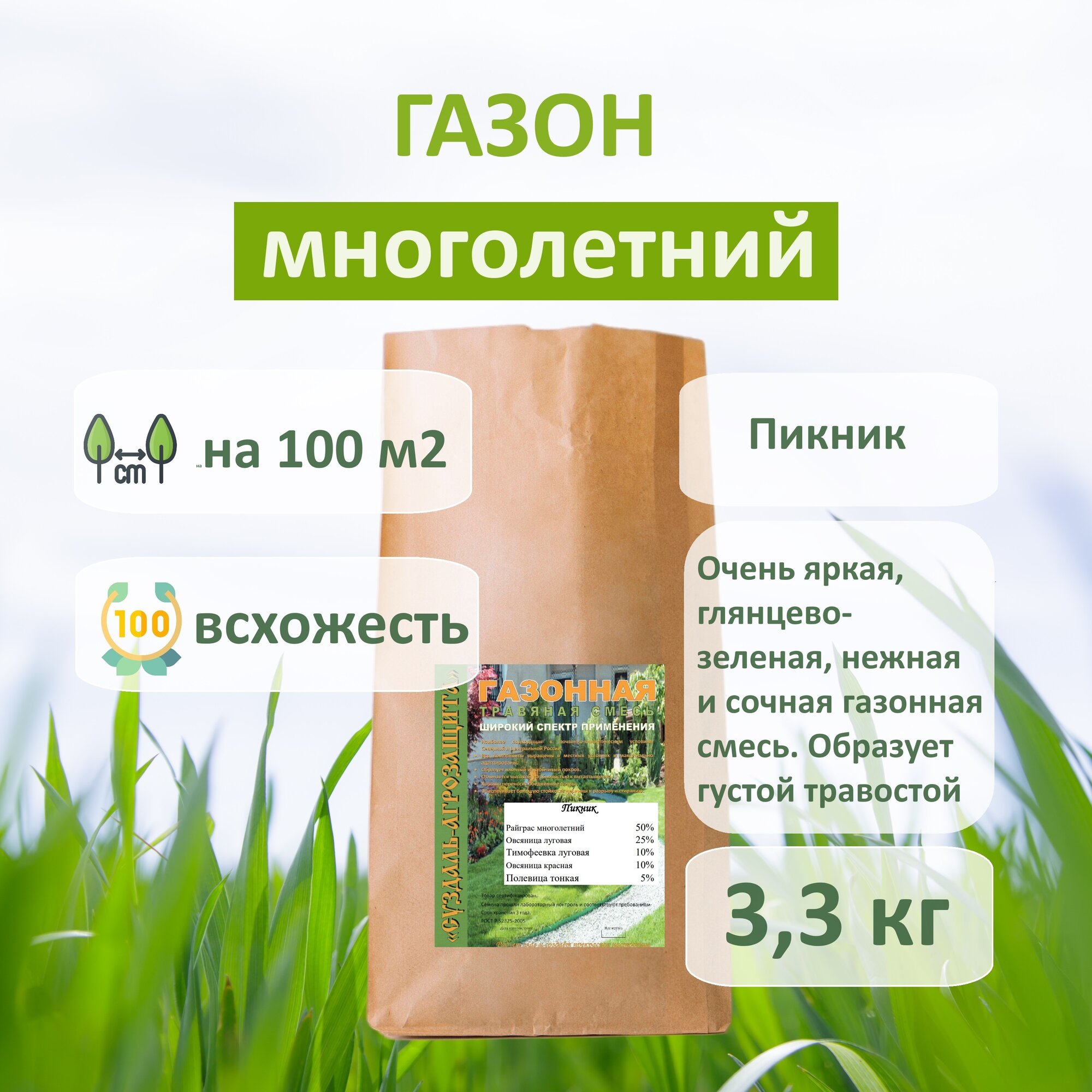 Семена многолетней газонной травы "Пикник" 3 кг интересное: