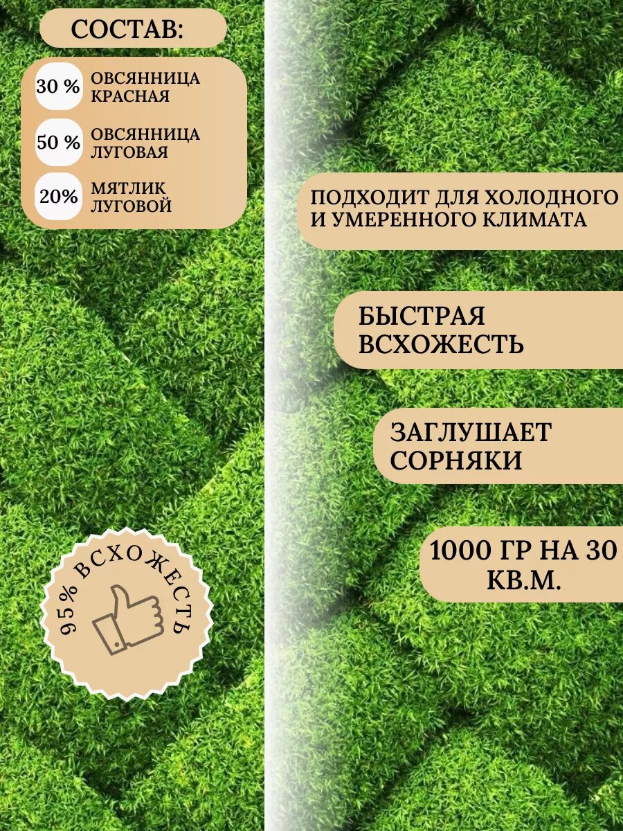 Газонная трава семена низкорослая Гном 1 кг интересное: