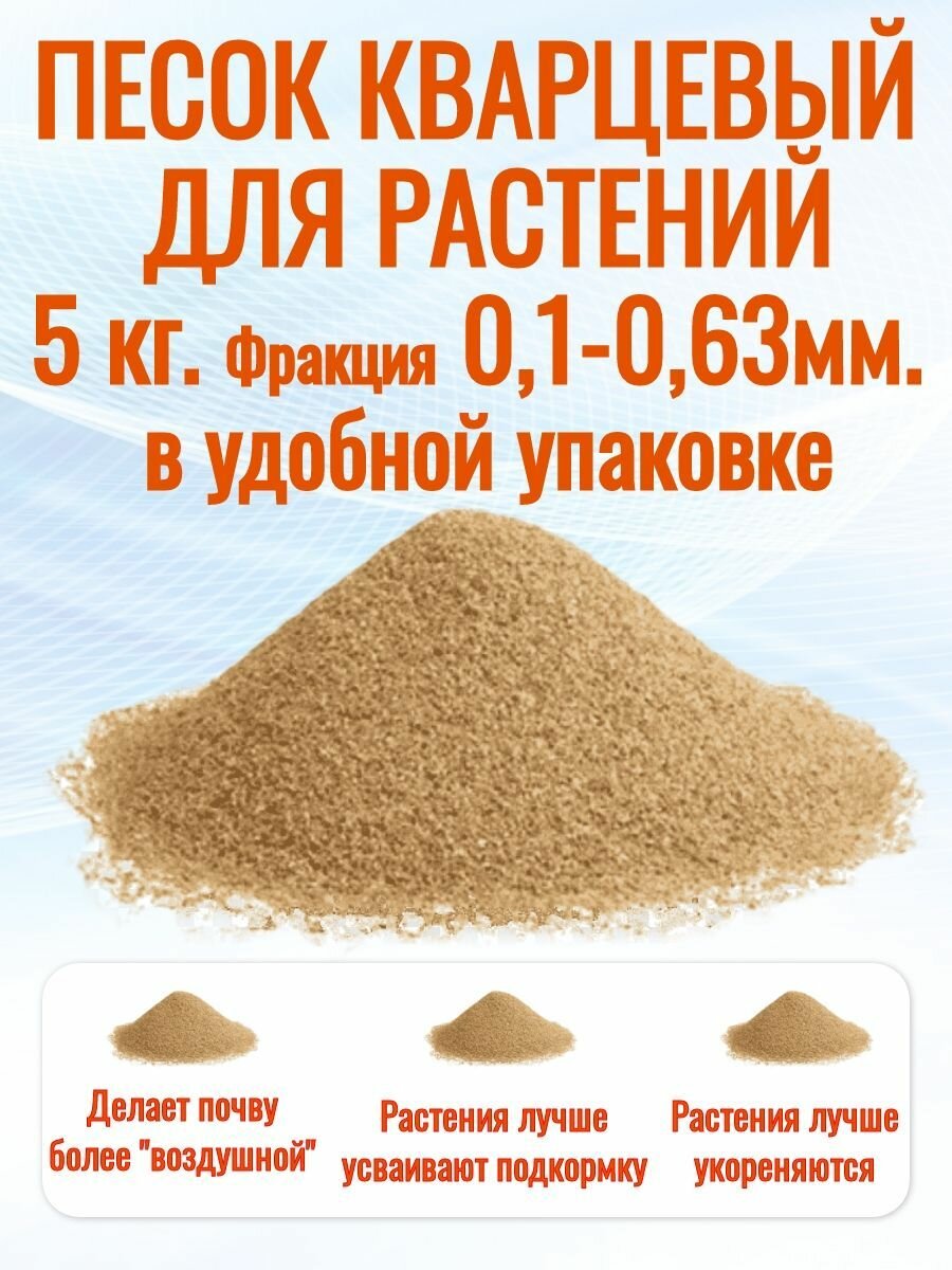 Песок речной для растений аквандо, фракция 0,1-0,63 мм. Для грунтов, промытый, прокаленный, окатанный. 5кг. Мешок в коробке. интересное: