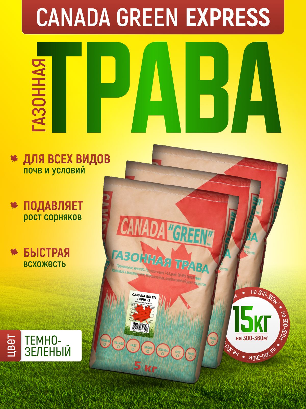 Газонная трава Канада Грин EXPRESS Быстрорастущая 15кг / семена газона райграс, мятлик, овсяница интересное: