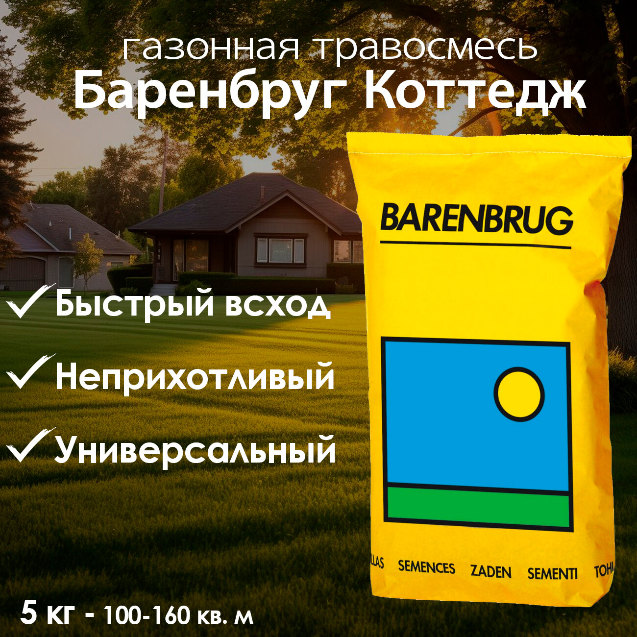 Газонная травосмесь Barenbrug "Коттедж", для солнечных и теневых участков, 5 кг интересное: