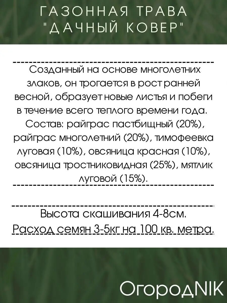 Газонная Трава "Дачный Ковер 200 грамм интересное: