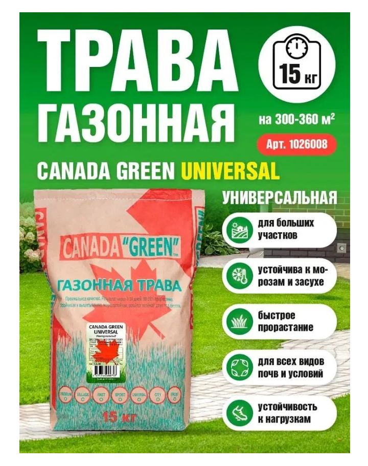 Газонная трава семена Универсальная 15кг / Канада Грин Универсальный 15кг/ семена газона райграс, тимофеевка, овсяница интересное: