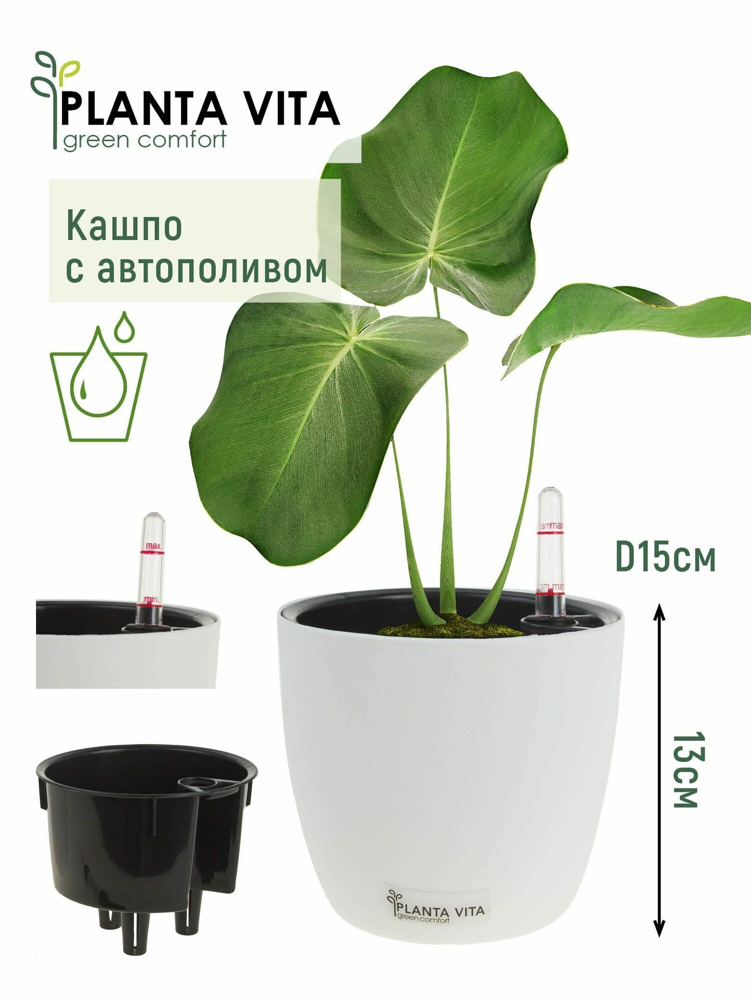 Кашпо для цветов суккулентов кактусов с автополивом пластиковоеPLANTA VITA Round Matt white горшок настольный для декора D15xH13 см интересное: