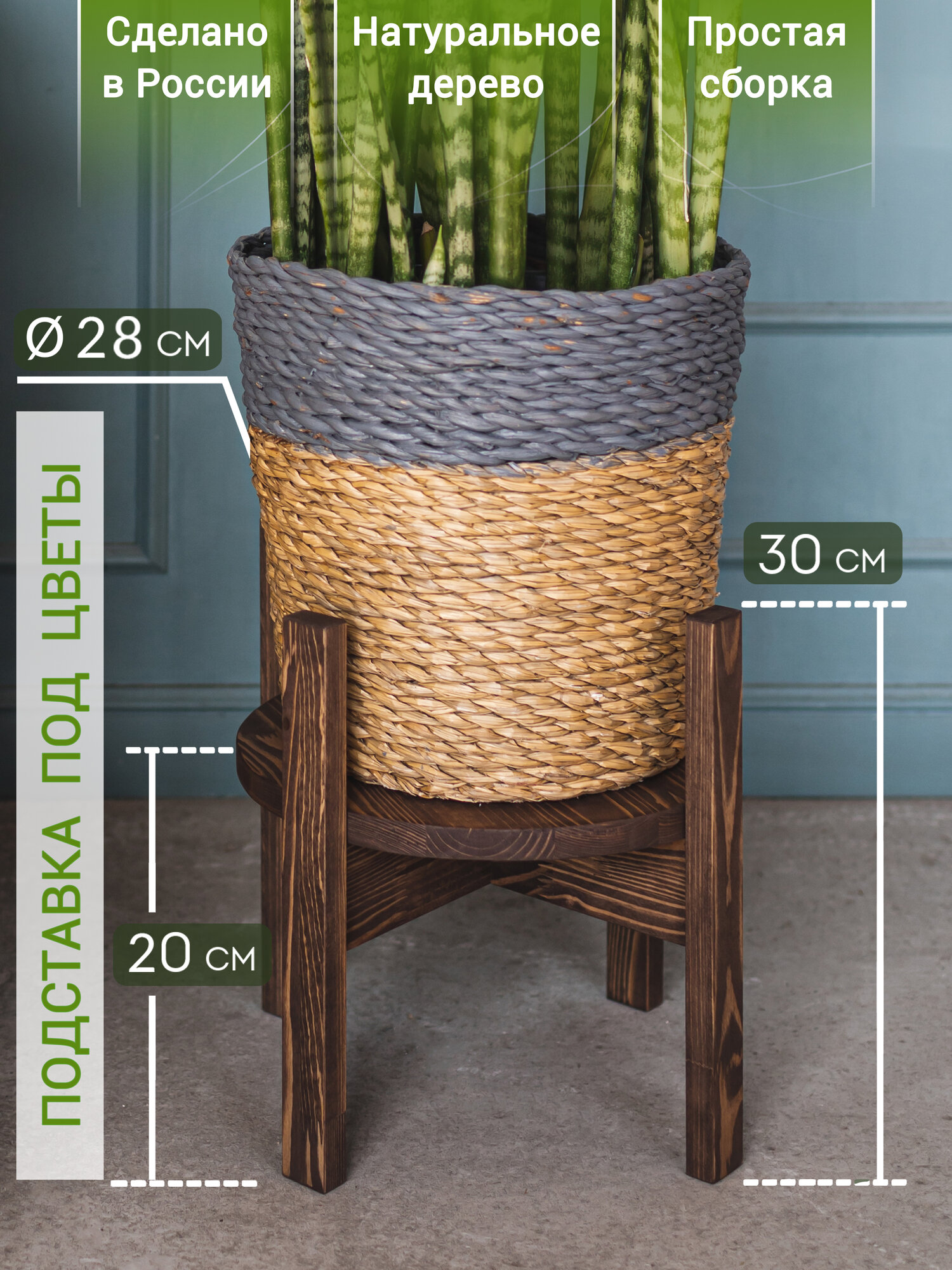 Подставка для цветов напольная деревянная, цвет темно-коричневый, высота 30 см, диаметр 24 см