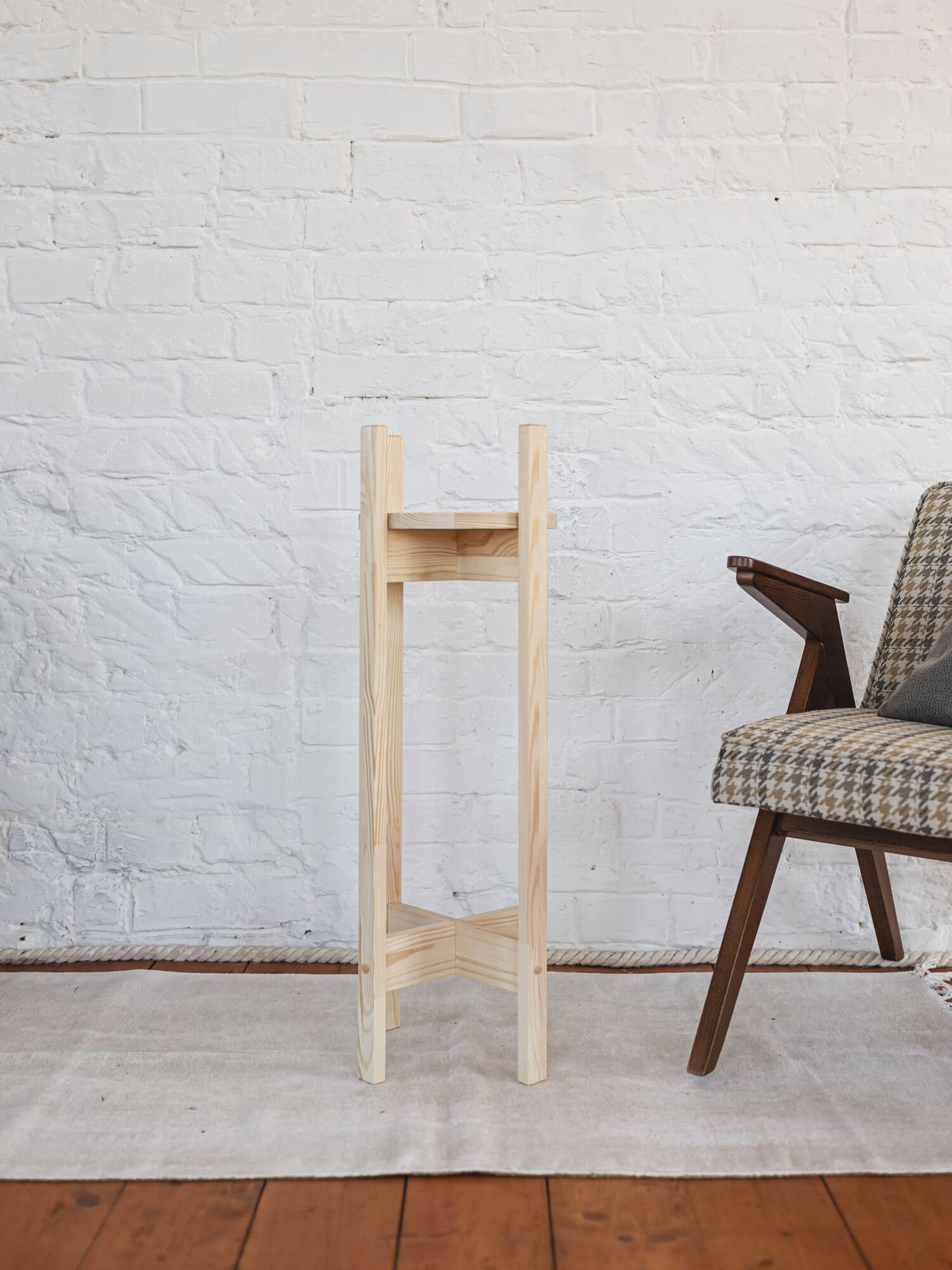 Подставка для цветов напольная деревянная, неокрашенная, высота 45 см, диаметр 24 см
