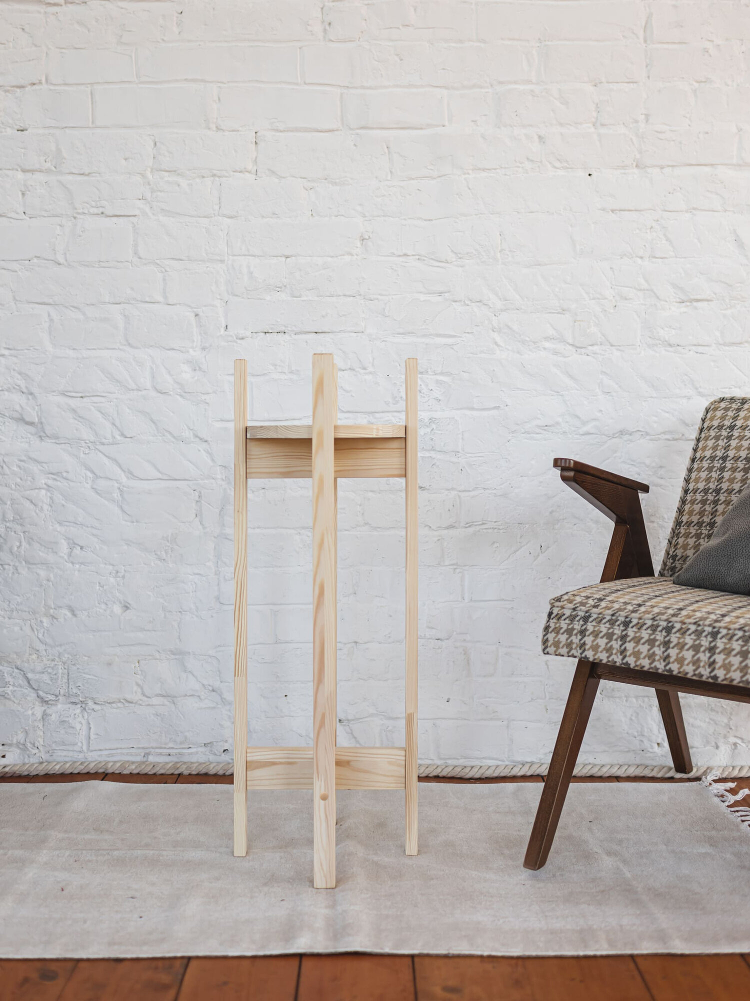 Подставка для цветов напольная деревянная, цвет светло-коричневый, высота 45 см, диаметр 24 см