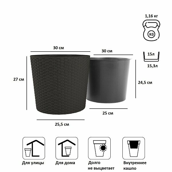 Кашпо для цветов RATO ROUND DRTUS300L-440U венге 2 предмета 15 и 15.3л без дренажных отверстий